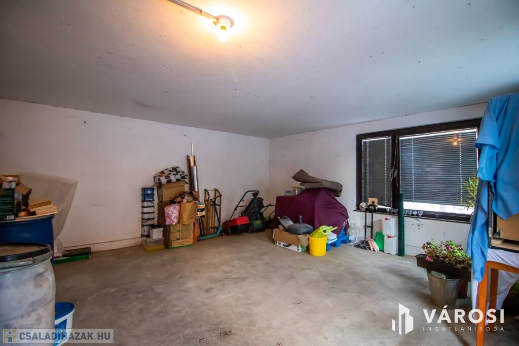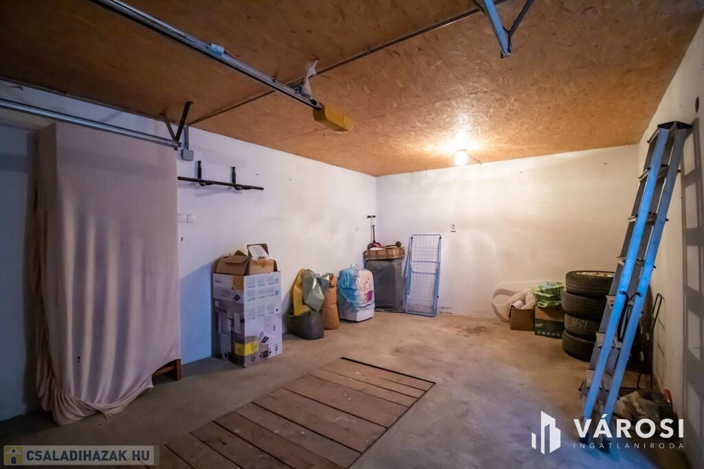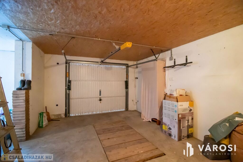 Parkolás motoros ajtóval ellátott garázsban és az utcán is lehetséges, de természetesen a tolókapun keresztül megközelíthető udvaron is van bőven hely az autó tárolására. A zárt, magas kerítés biztosítja, hogy az utcáról ne lehessen az udvarba belátni. Van még hely háziállatoknak, illetve rendelkezésre áll egy kis veteményeskert is.