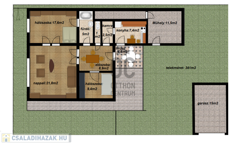 A telken egy 15 m²-es, téglából épült garázs is helyet kapott.