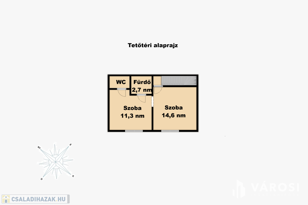 A második lakásban szoba, konyha, fürdőszoba 27 négyzetméteren.