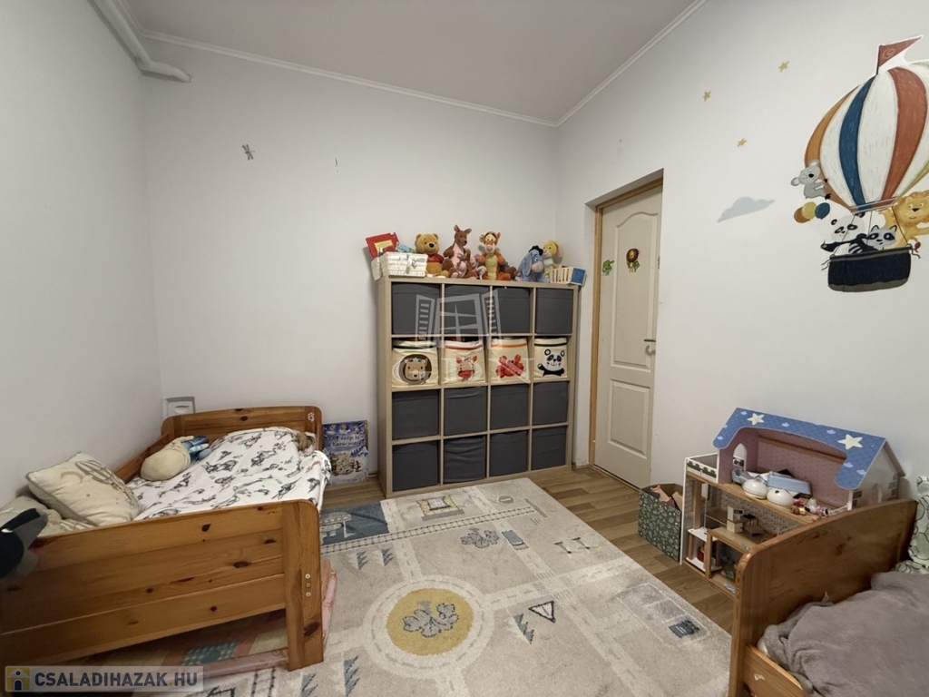 A házban található a tágas, világos nappali, az ebédlővel, konyha, kamra, 2 szoba, valamint a fürdőszoba és a különálló wc, terasz. A ház tetőtere beépíthető.