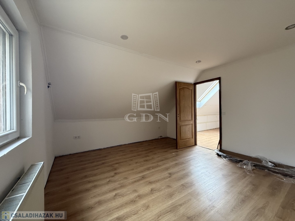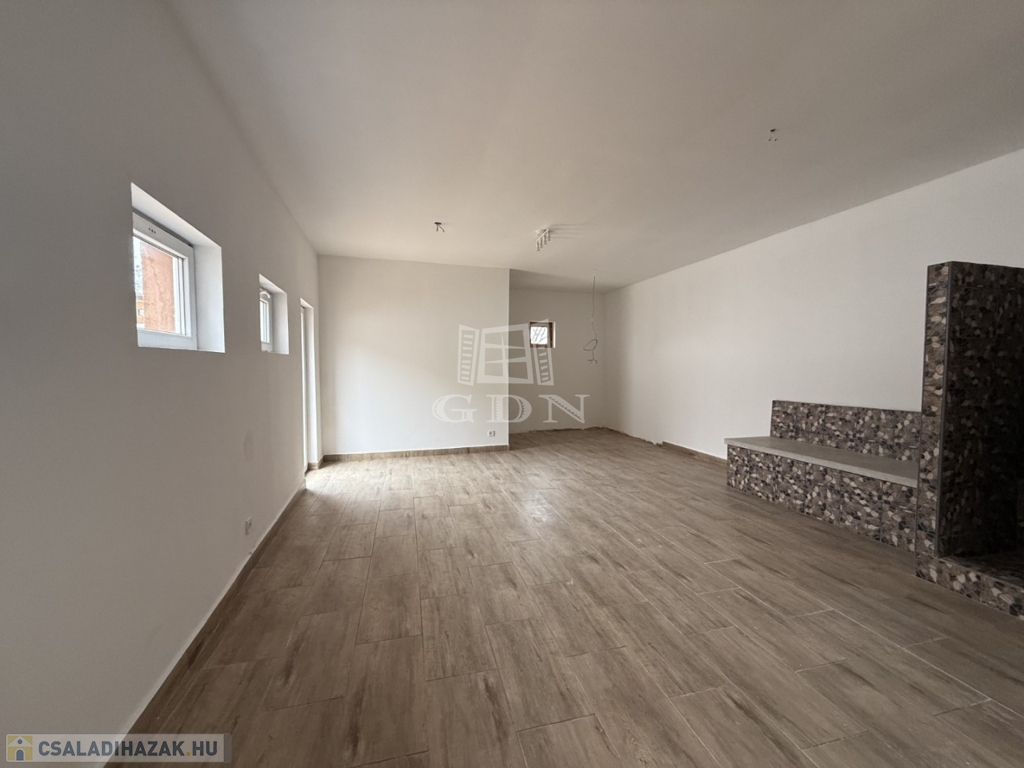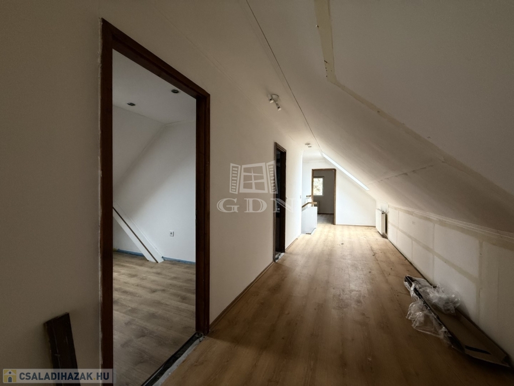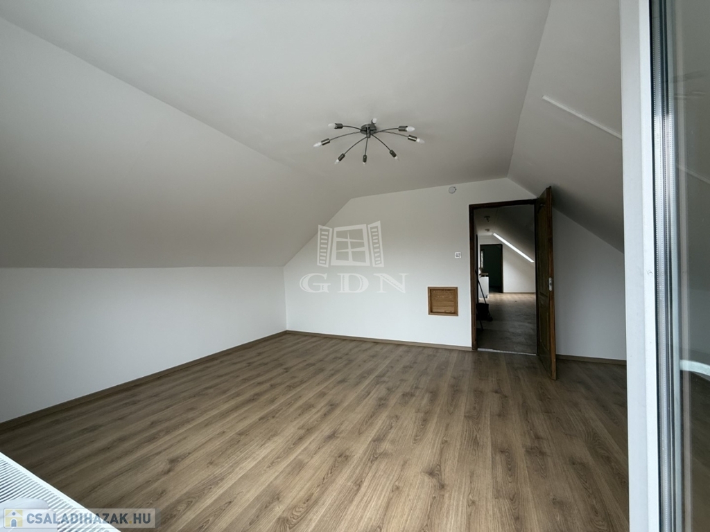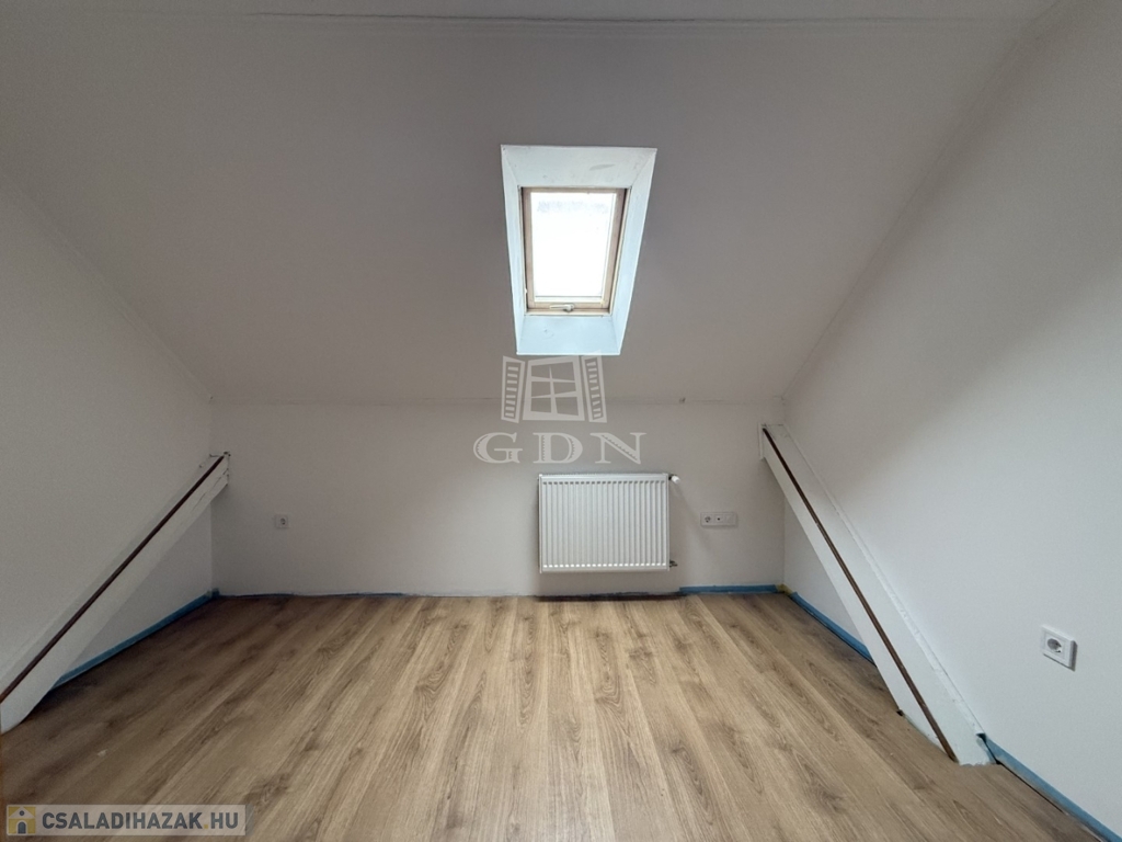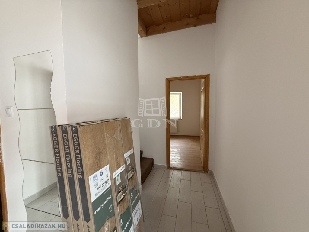 - földszint: kialakításra került előtér, tágas nappali- konyha étkező, 1 szoba, vendég wc, háztartási helyiség kamra,