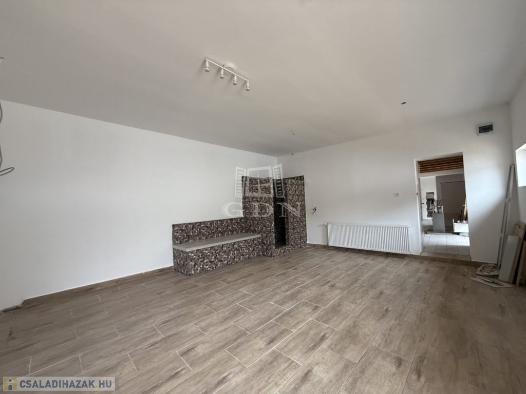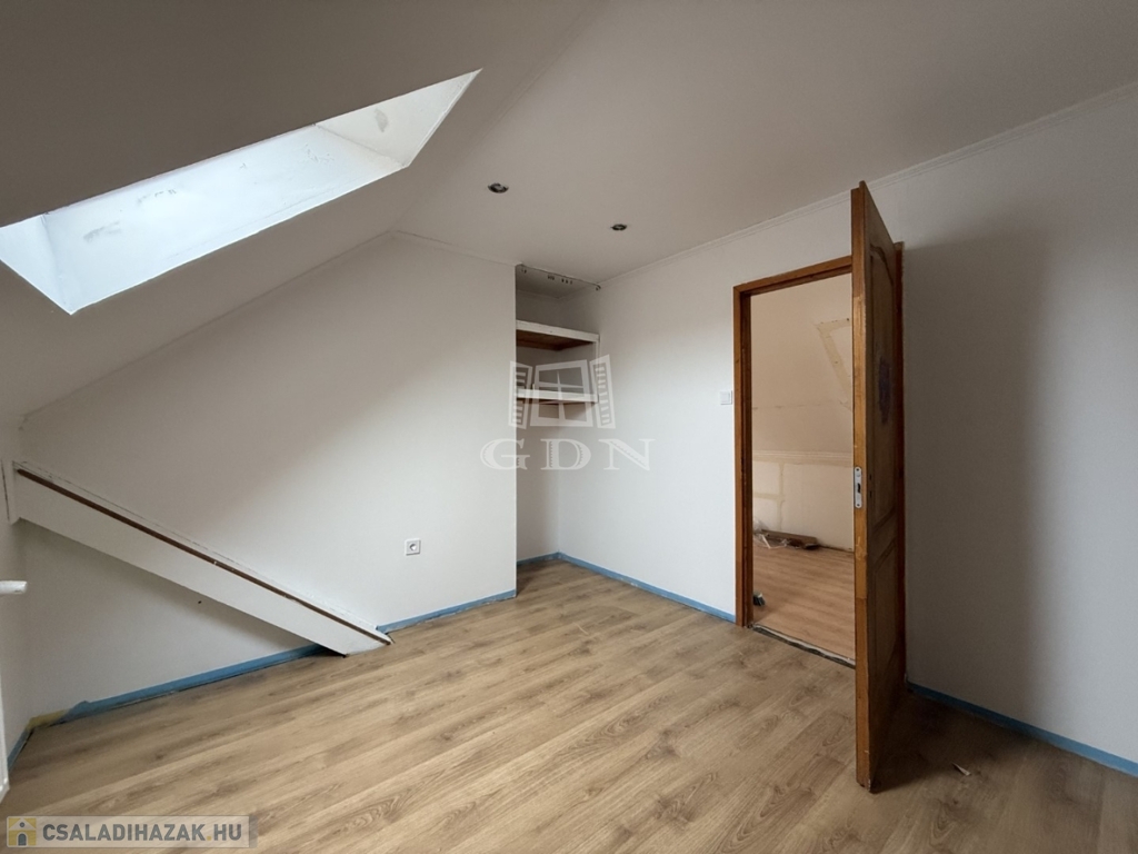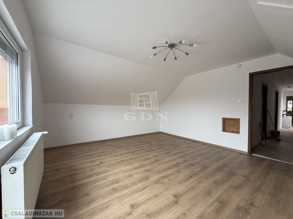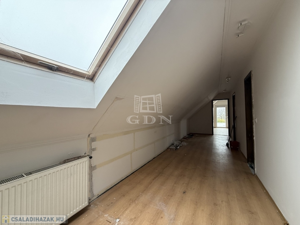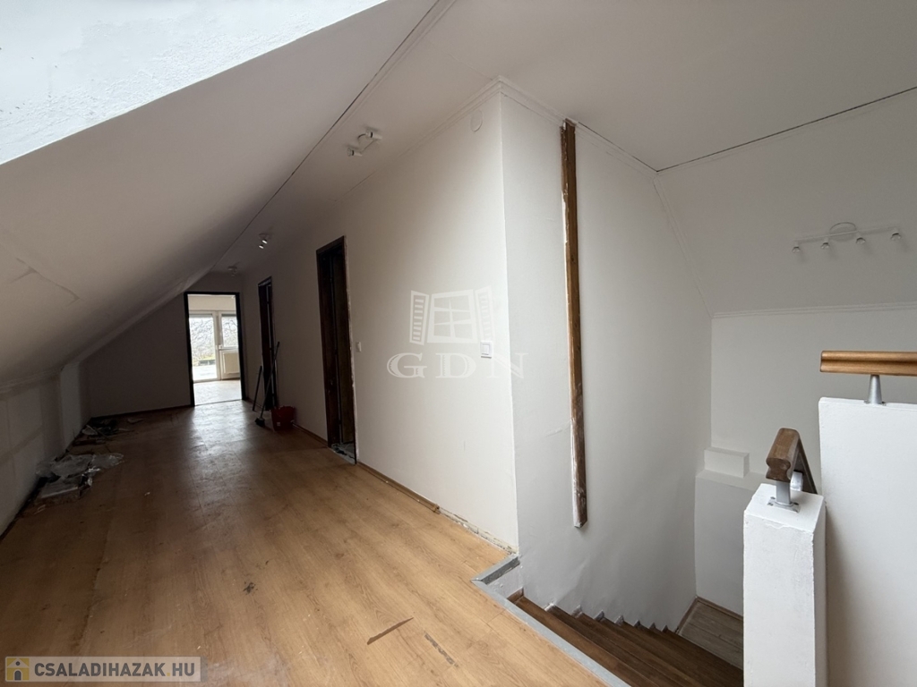 - földszint: kialakításra került előtér, tágas nappali- konyha étkező, 1 szoba, vendég wc, háztartási helyiség kamra,