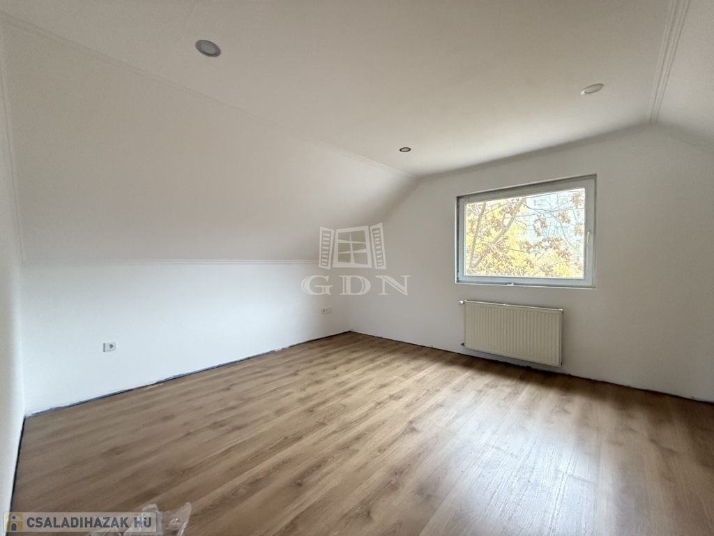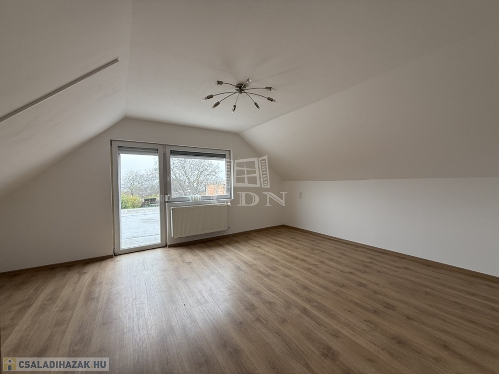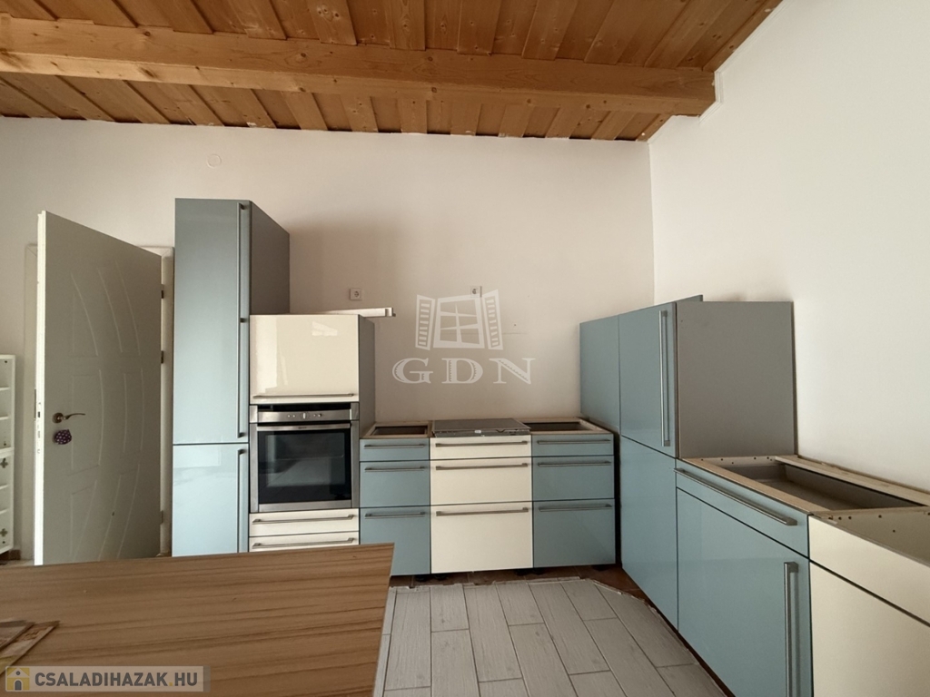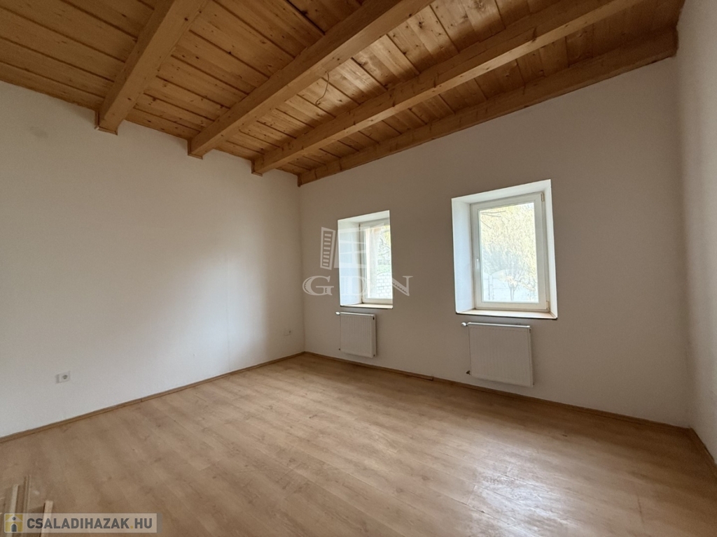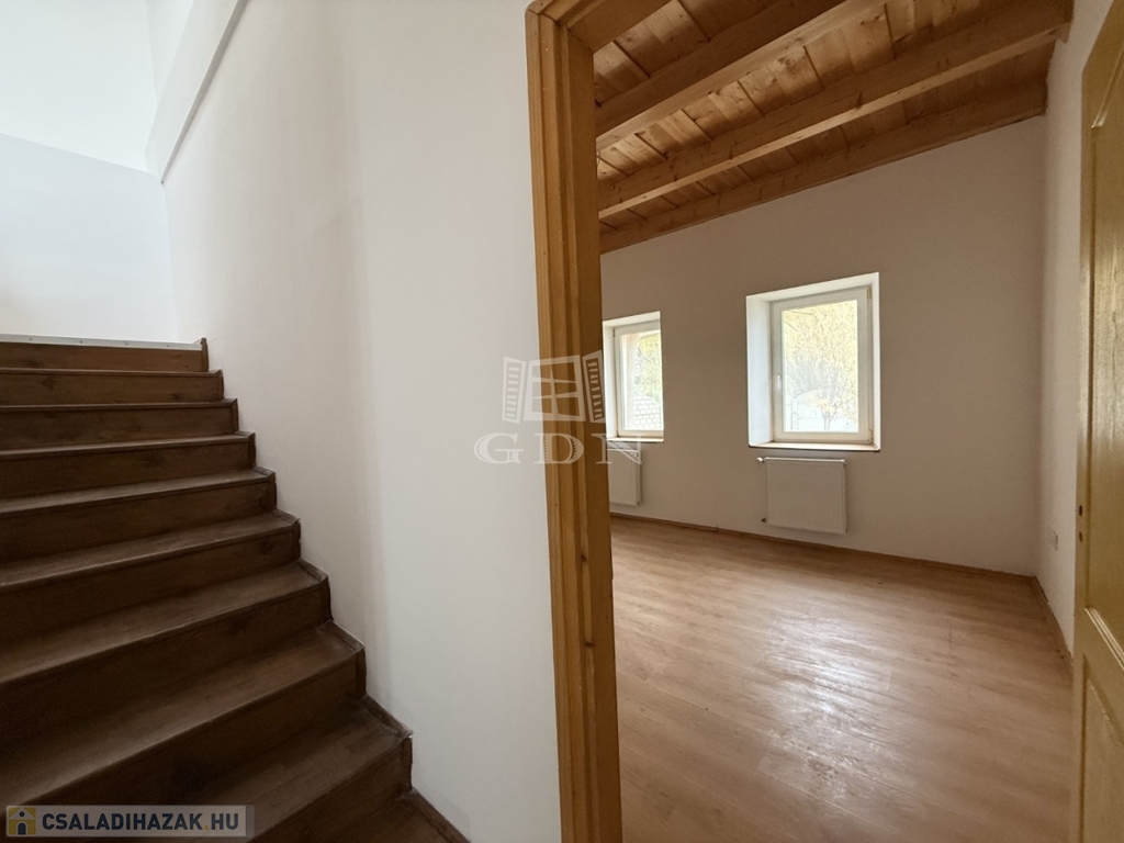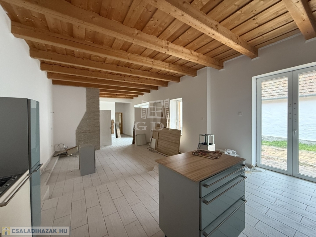 - földszint: kialakításra került előtér, tágas nappali- konyha étkező, 1 szoba, vendég wc, háztartási helyiség kamra,