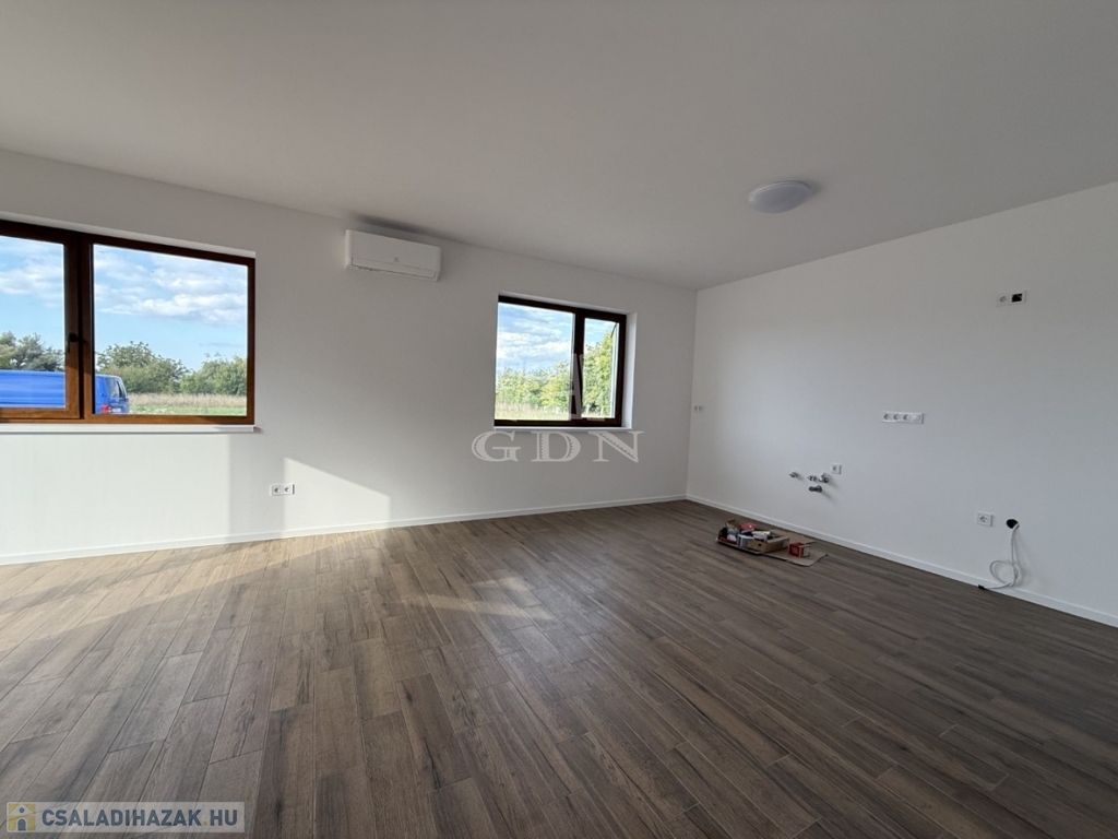 A nyílászárók műanyagból készültek,3 rétegű hőszigetelt üvegezéssel, rejtett redőny tokkal. A burkolatok magas minőségű járólap, illetve laminált padló. Fűtése-melegvíz: hőszivattyú megoldással, padlófűtéssel.