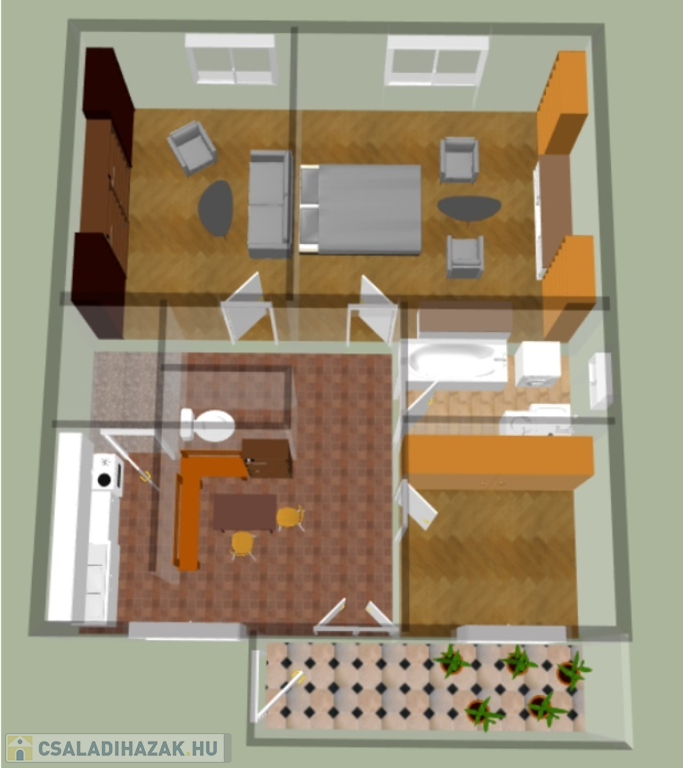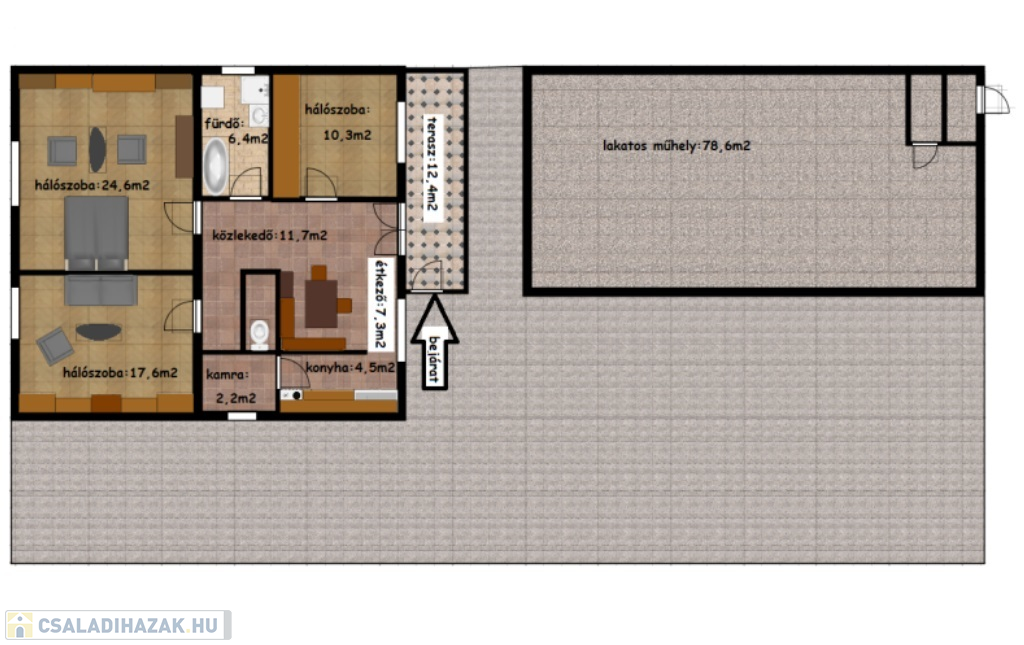 96,4 m²-es lakótér, 3 tágas szoba
