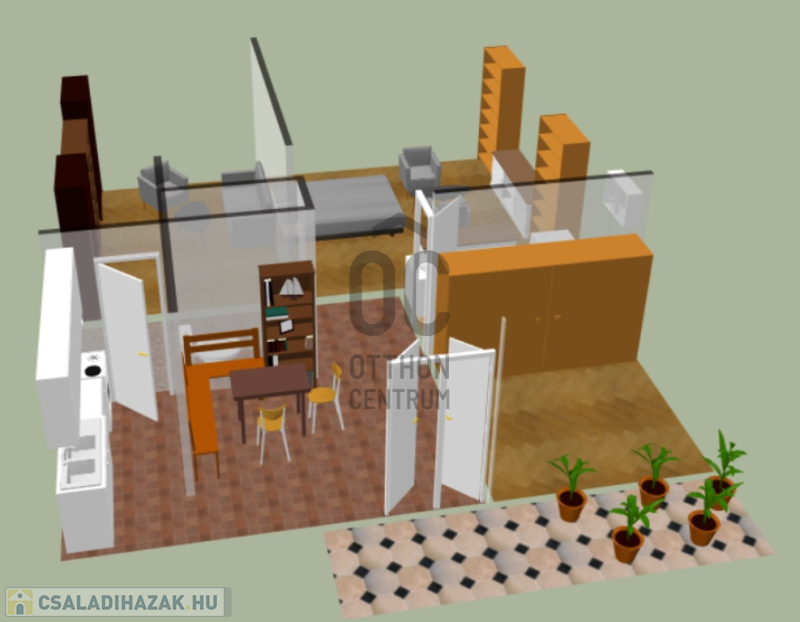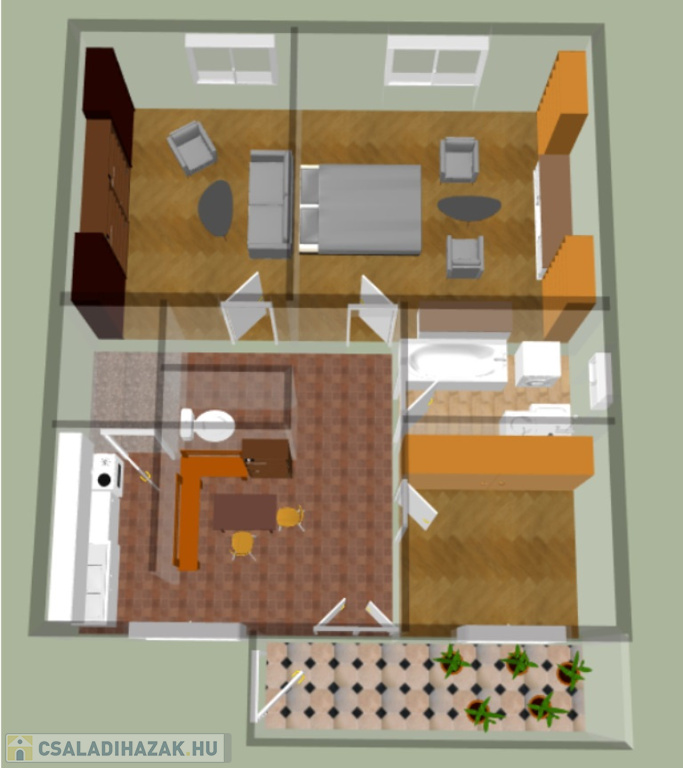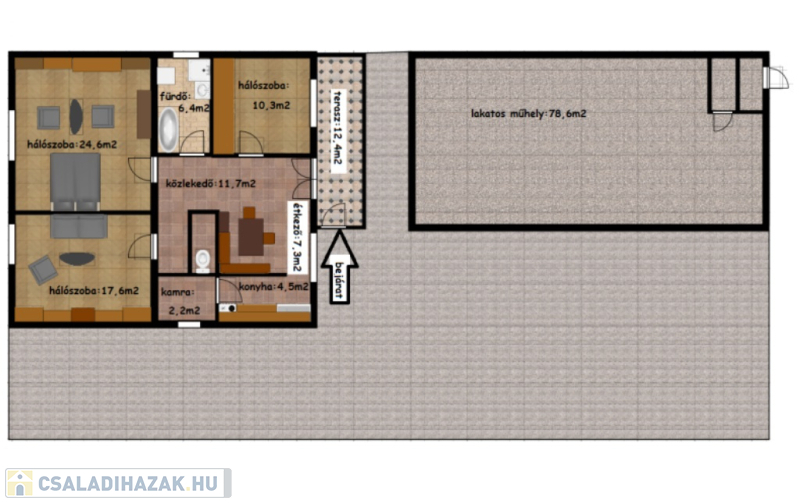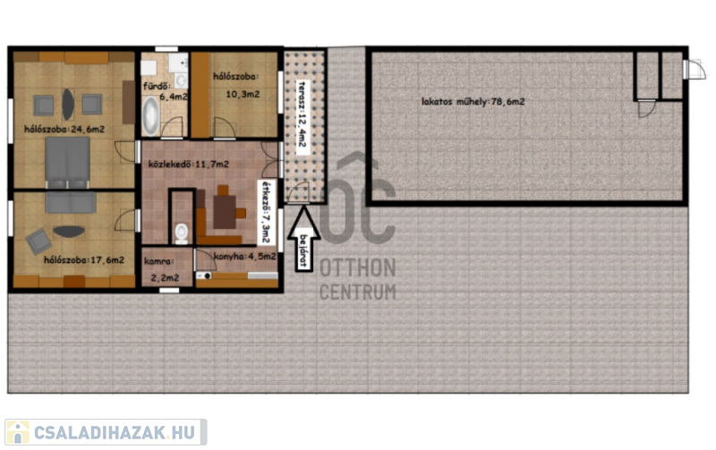 • 96,4 m²-es lakótér, 3 tágas szoba