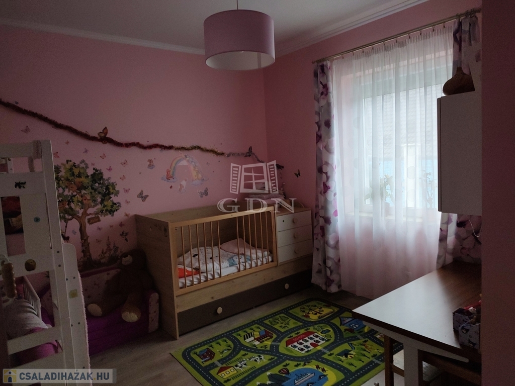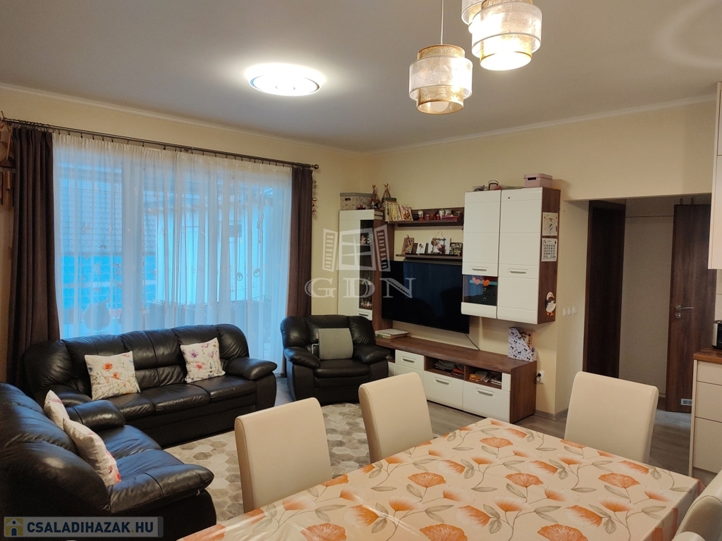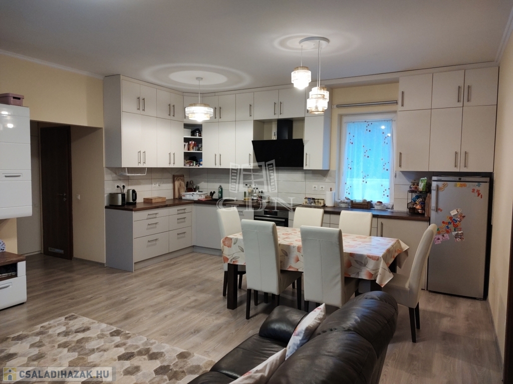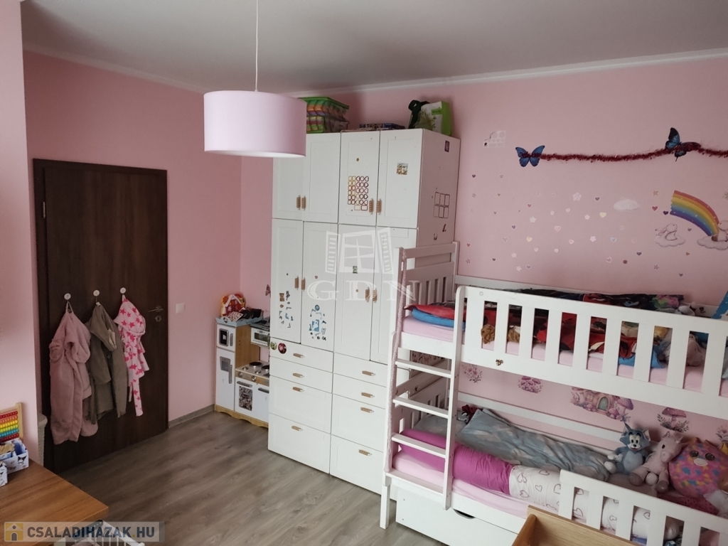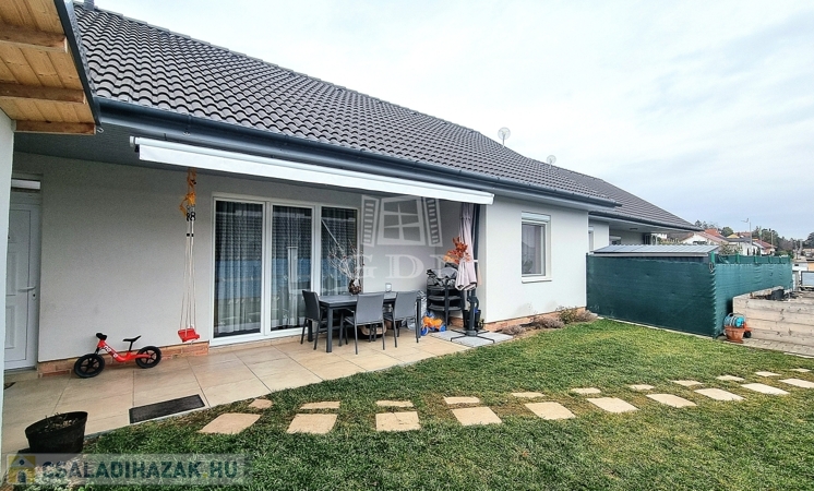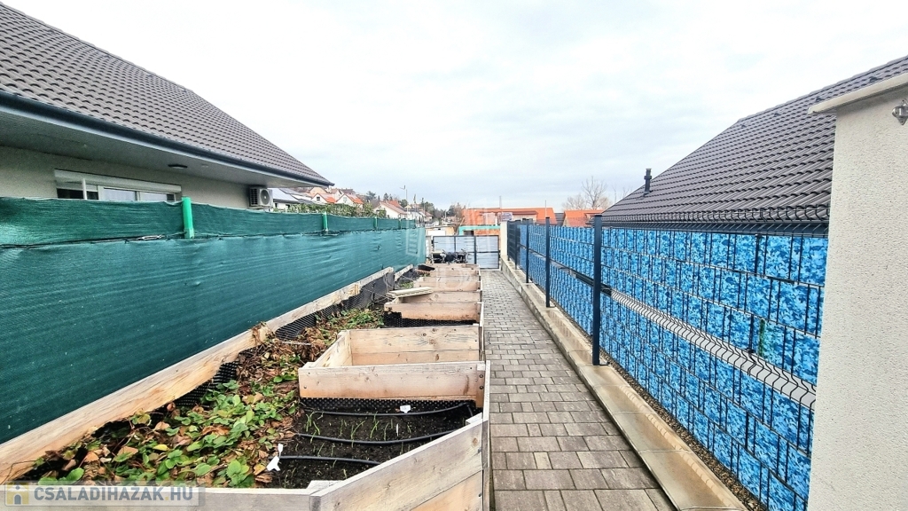 Az ingatlanhoz elszeparált, saját 216 nm-es telekrész tartozik, most épülő fedett kocsibeállóval, automata kapuval.