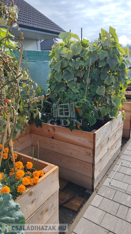 A növények öntözéséről esővízgyűjtő ciszterna gondoskodik, praktikus magaságyás épült.