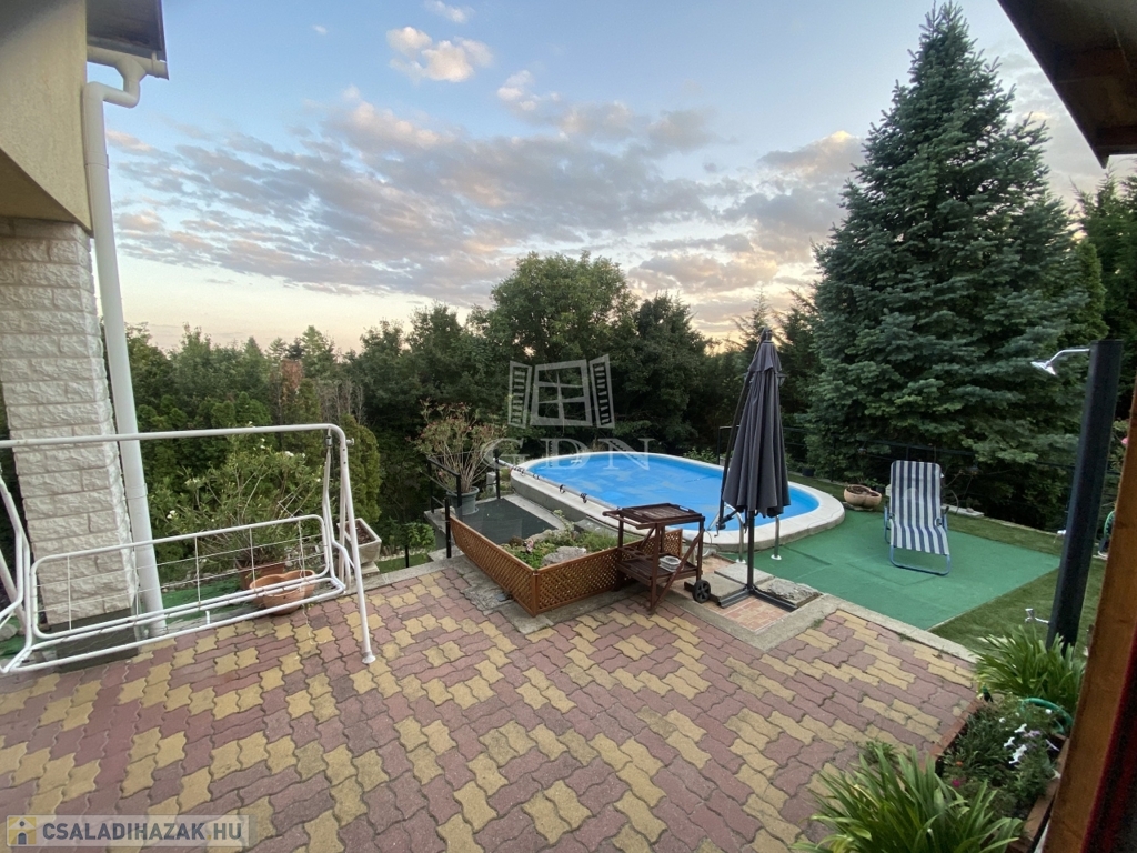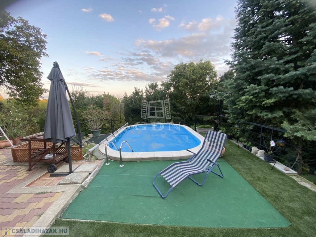 Az ingatlan két szintes, szigetelt. A földszinten található konyha, szoba, tárolók, 30 négyzetméter alapterületű (téliesített) terasz és egy 20 négyzetméteres vízforgatós, napelemmel fűthető, gépészettel ellátott medence, valamint egy 20 négyzetméteres garázs, elektromos kapuval.