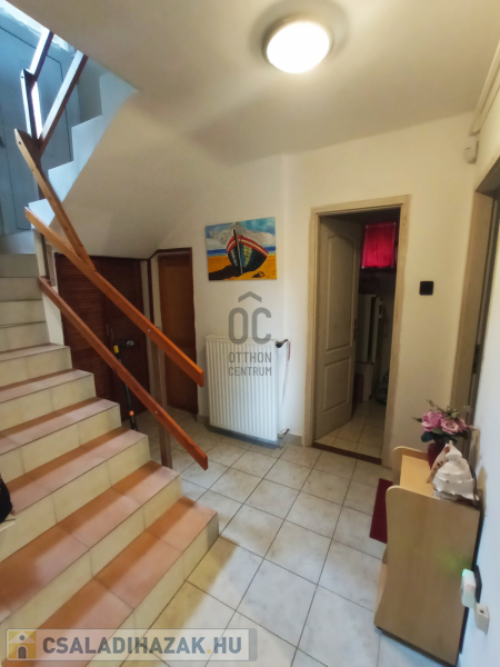A ház utca fronti bejárata középen helyezkedik el, lefelé az alsó szinten egy hálószoba, fürdőszoba, étkező-konyha kapott helyet, ahonnan ki tudunk lépni a közvetlenül a teraszra/kertbe, továbbá egy tároló is található. A bejárattól felfelé az emeleti szinten további 1 háló szoba, fürdőszoba és egy 16 nm nagyságú nappali helyezkedik el, csodálatos panorámát nyújtó erkéllyel. Téli időszakban meleg hangulatot árasztó kandallóval.