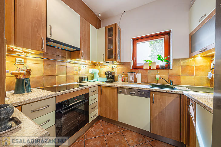 Az alapterülete 185 nm, plusz egy 294 nm-es saját kert.