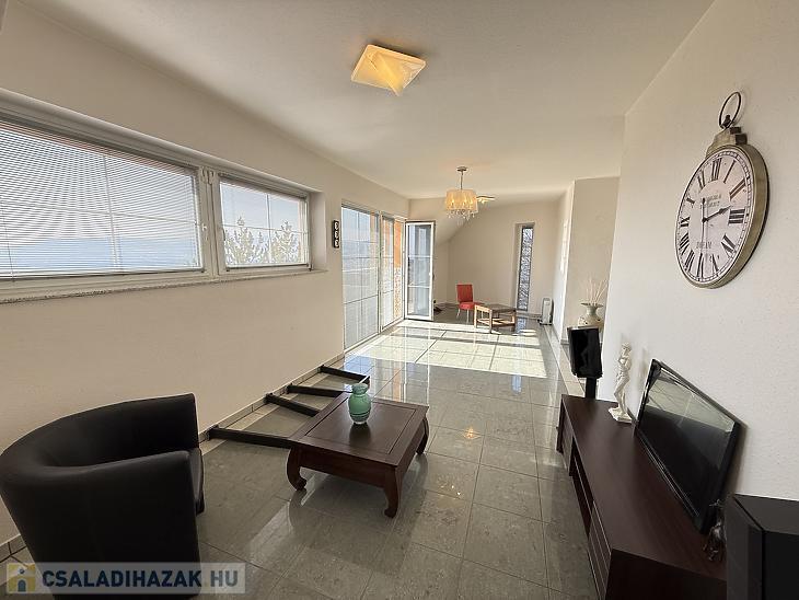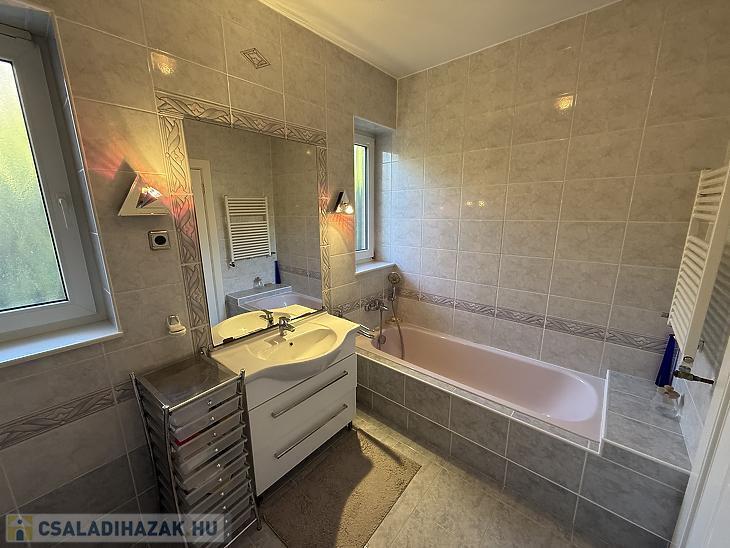 - Az ház 1997-ben épült, 30 cm-es Porotherm téglából, a pinceszint zsalukővel lett megépítve. A homlokzat 6 cm vastag Dryvit szigetelést kapott.