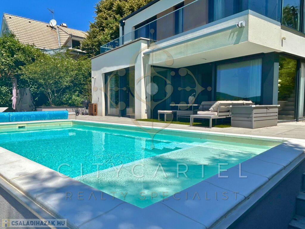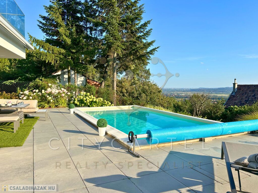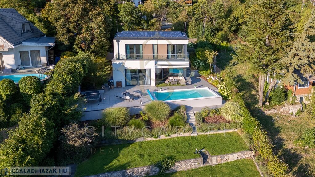 PANORÁMÁS MINIMÁL HÁZ SZENTENDRE LEGSZEBB RÉSZÉN – FŰTHETŐ MEDENCE, PARKOSÍTOTT KERT, OKOS MEGOLDÁSOK