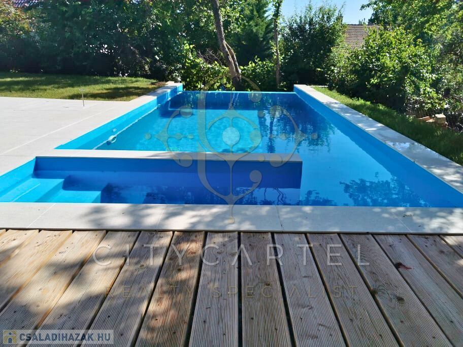 Földszint: Tágas, világos amerikai konyhás nappali és étkező nagy üvegfelületekkel, közvetlen kijárattal a panorámás teraszra és a medencéhez. Dolgozószoba (vagy vendégszoba), külön WC mosdóval, gardrób, gépészeti helyiség.