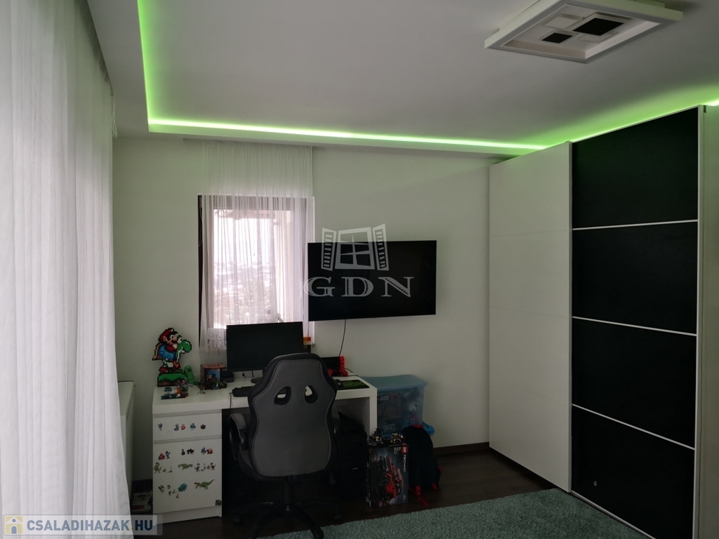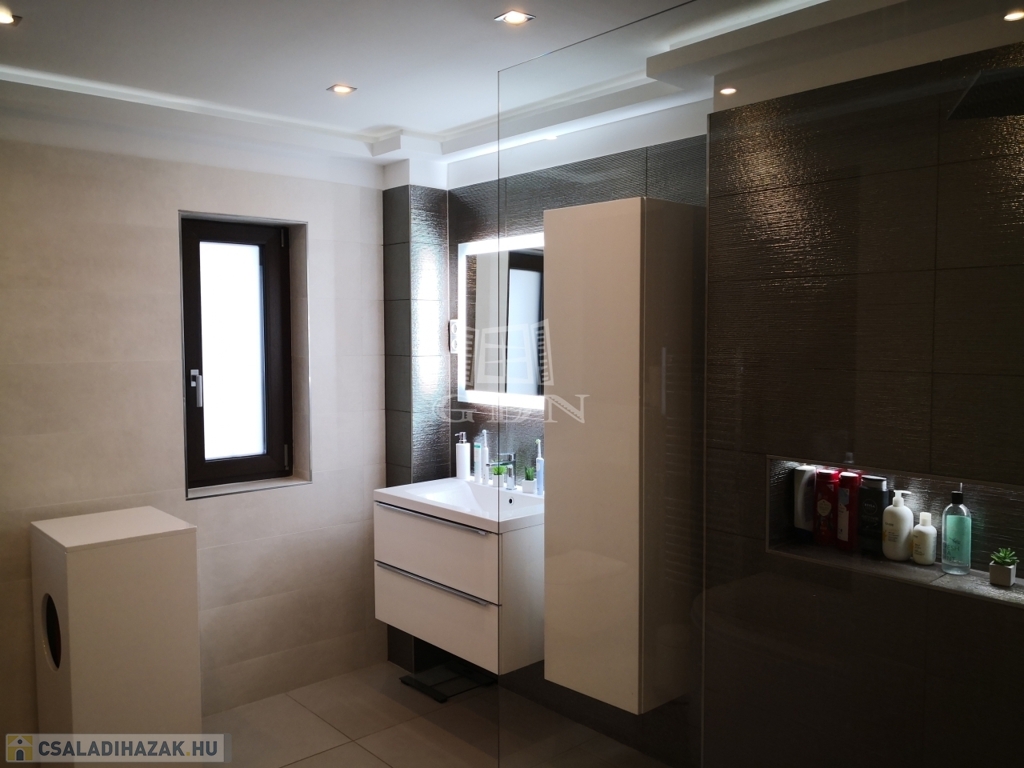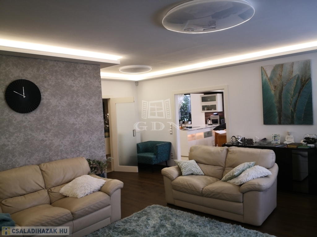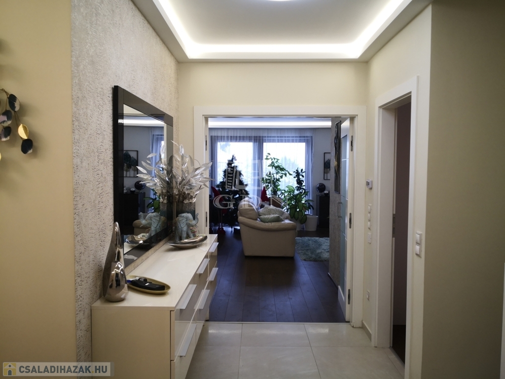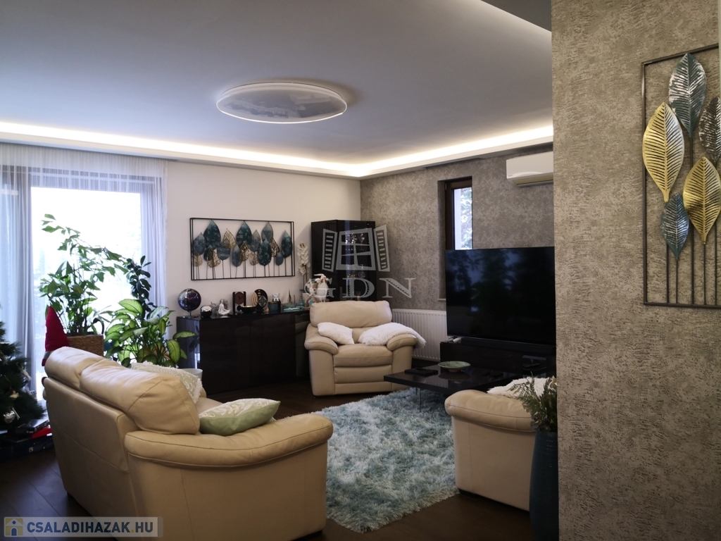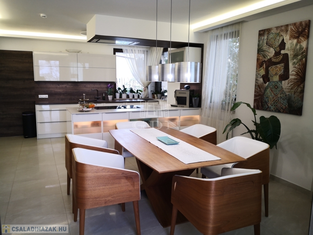 A 889 m²-es, parkosított telken álló, 291 négyzetméteres ház 2015-ben épült, ezt követően 2022-ben kívül-belül teljes körű, minden apró részletére kiterjedő magas minőségű felújításon és átalakításon esett át..