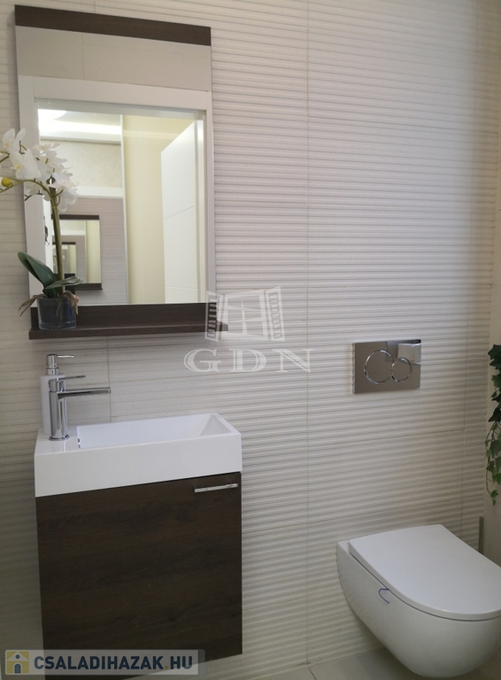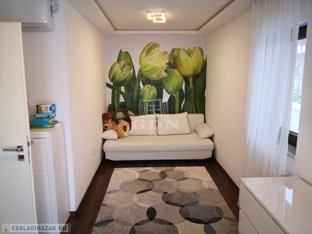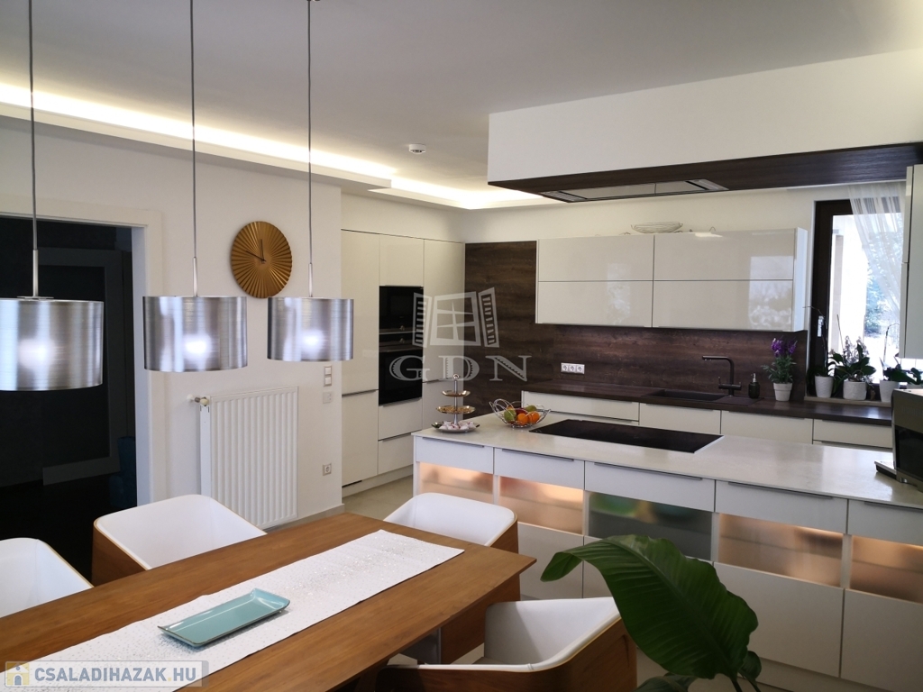 A modern, Siemens gépekkel felszerelt Nobilia konyha és a stílusos étkező mellett hat tágas szobával, elegáns gardróbbal, két exkluzív fürdőszobával, valamint négy WC-vel és tágas, világos terekkel rendelkezik. A középső szinten magas minőségű, gyönyörű parketta a burkolat, a prémium életérzés a ház minden apró részletében jelen van, amit az alábbi felszereltség is erősít.