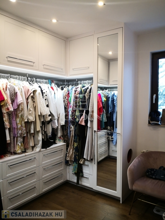 A ház eleganciája és szépsége mellett praktikus és átgondolt is, ilyen ritkán látott részlet pl. a mosókonyhába levezető szennyesledobó, valamint a testre szabott gardróbok, amelyek a mindennapok kényelmét szolgálják.