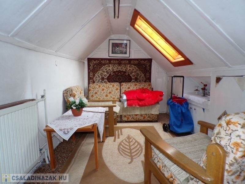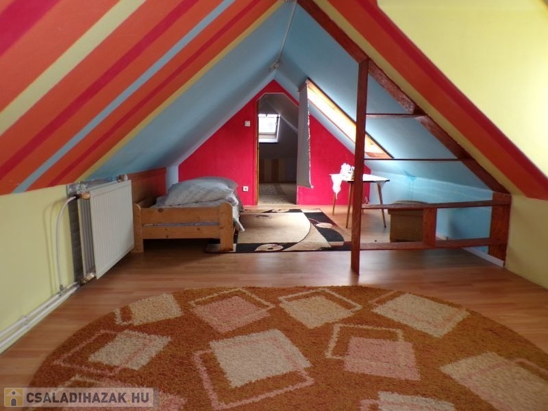 Ezen kívül a tetőtérben található még egy további hálószoba, amely az épület végén, egy külső lépcsőn keresztül közelíthető meg, teljesen szeparáltan. A szobák laminált parkettával, a többi helyiség hidegburkolattal fedett. A belmagasság 2,4 méter.