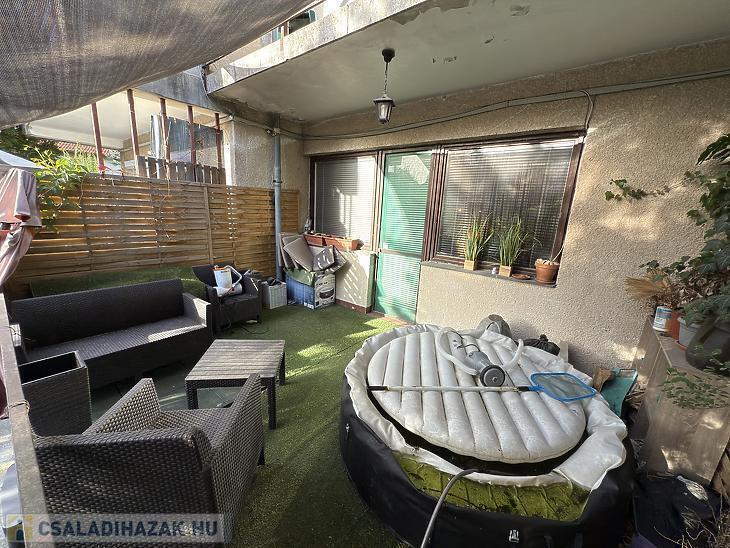 -A házhoz tartozik egy 60 nm-es közös kert, játszótérrel.
