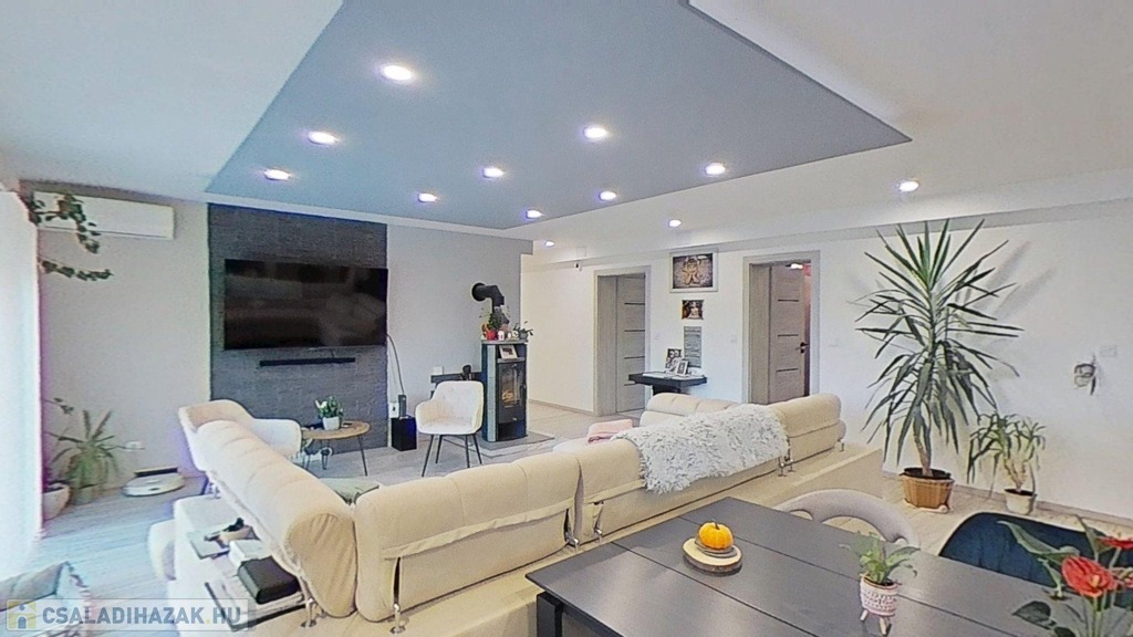 Világos, tágas belső terek, praktikus elosztás, bravúros térkihasználás, pazar, egymással harmonizáló színek jellemzik az ingatlant. A helyiségek méreteiről, a ház alaprajzáról a mellékelt virtuális túra keretein belül tájékozódhat, megtekintés előtt érdemes bejárni.