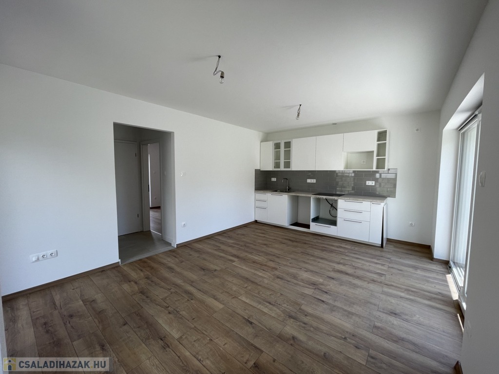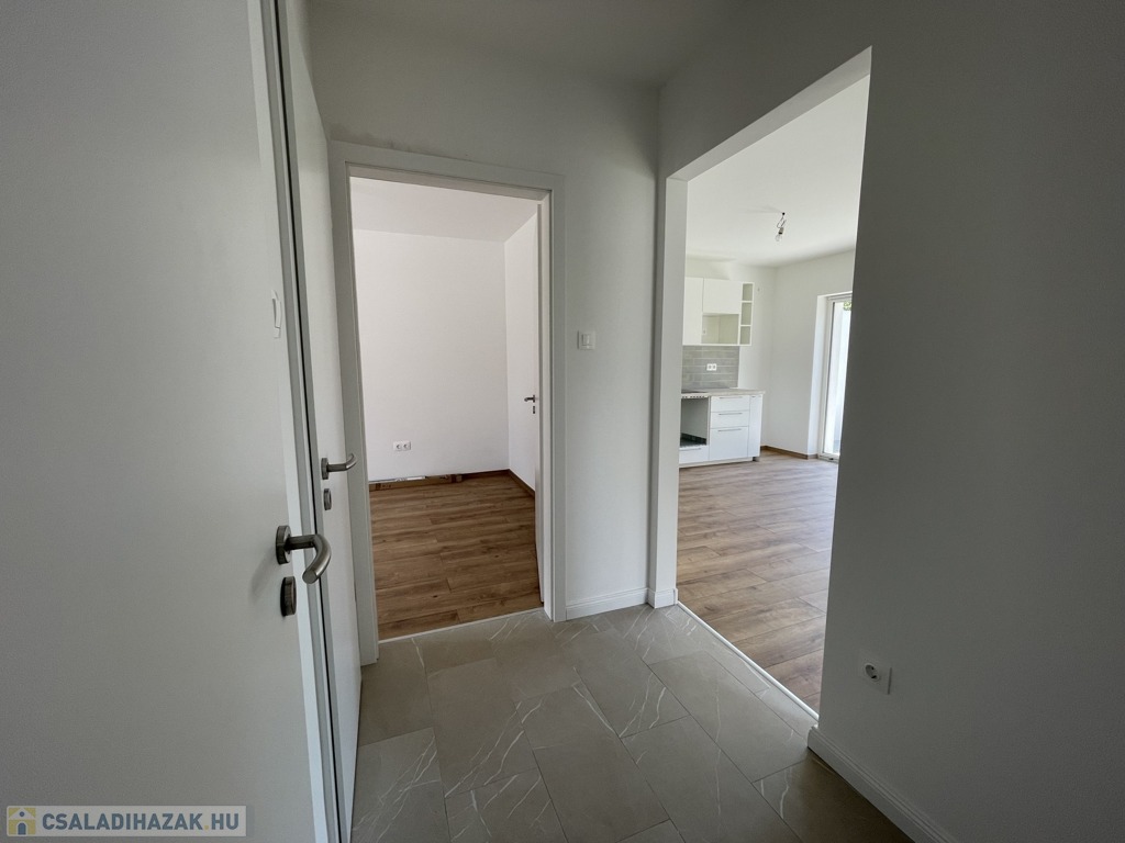 Az amerikai konyhás nappaliban minőségi Ikea konyhabútor található elektromos főzőlappal, nagyméretű kerámia mosogatótálcával és Kludi csapteleppel. A két lakás egyforma alaprajzzal rendelkezik: amerikai konyhás nappali, mely a terasz felé minőségi bukó-toló ajtóval nyílik, terasz- és fürdő-wc kapcsolatos hálószoba, előszoba, külön WC, valamint gépészeti helyiség, ahol a mosógép kiállás is megtalálható.
