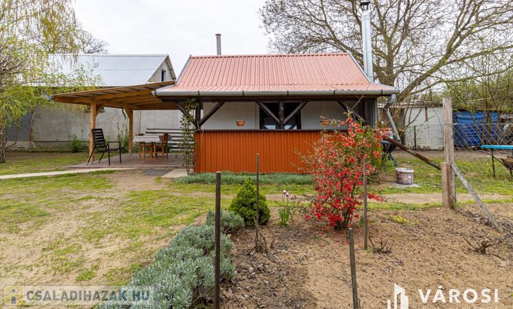 Teljes bútorzattal, kerti gépekkel, rotációs kapa, fűnyíró stb. kerül értékesítésre.