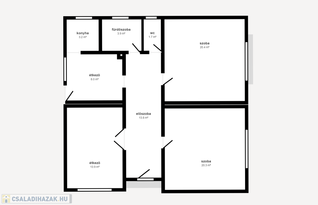 Nyílászárói még az eredeti fa ajtók és ablakok nagyon jó állapotúnak mondanám.