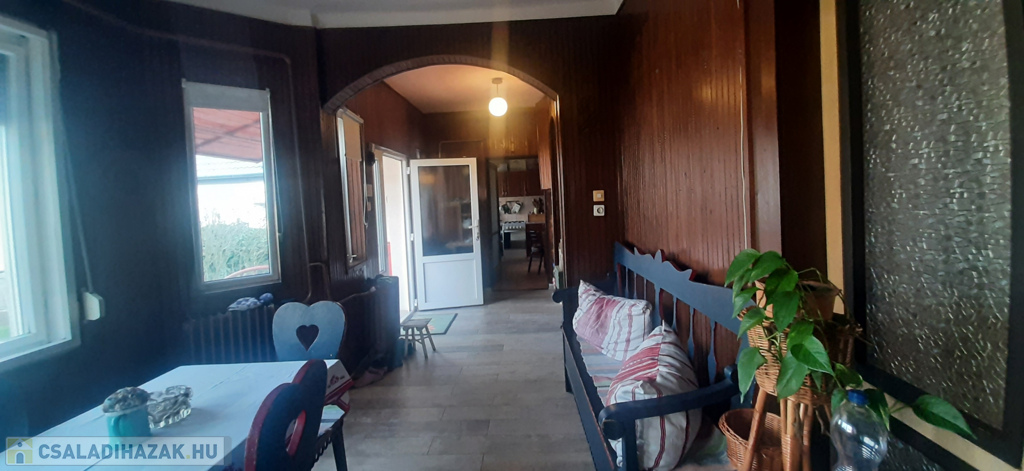 A belső terek világosak és otthonosak: nyílászárói részben modern műanyag, részben megőrzött, jó állapotú fa ablakok. A tetőtér beépíthető, a ház alatt pedig egy természetes fénnyel ellátott, ~40 m²-es pince került kialakításra – sokoldalúan hasznosítható.