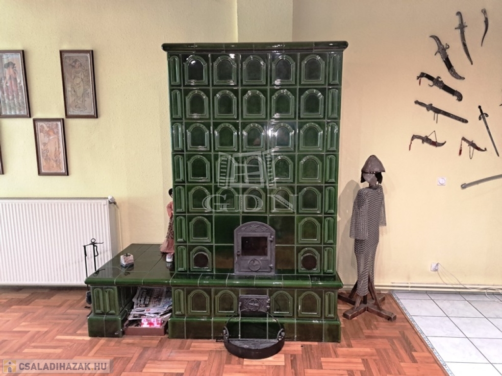 -Fűtés: gázcirkó radiátorokkal + hangulatos cserépkályha