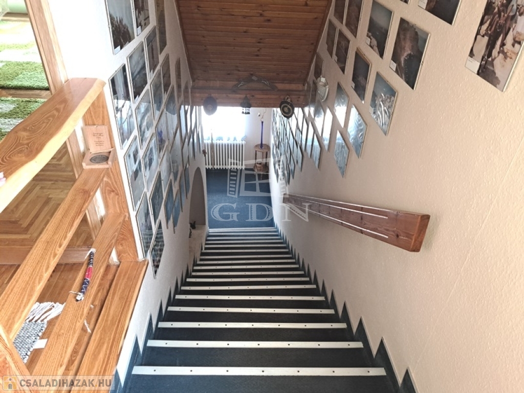 Helységei: 5 szoba, amerikai konyhás nappali, 2 fürdő, gardrób, mosókonyha, gépészeti helyiség, garázs, terasz