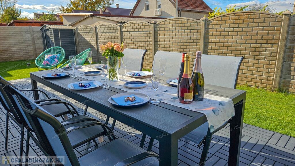 Szigethalom központjában, egy csendes, rendezett utcában, ÚJSZERŰ, TÁROLÓ-KAPCSOLATOS, OKOS OTTHON CSOMAGGAL ELLÁTOTT ( FŰTÉS, HŰTÉS, ÖNTÖZÉS, VILÁGÍTÁS IS TÁVOLRÓL VEZÉRELHETŐ) ikerház eladó.