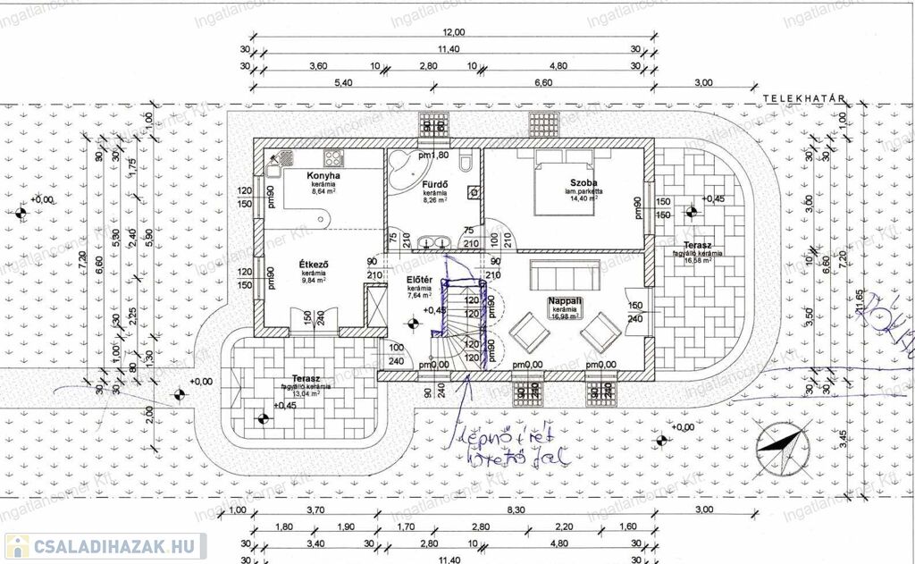 A telek két utca között helyezkedik el, így hátsó szomszédunk nincs.