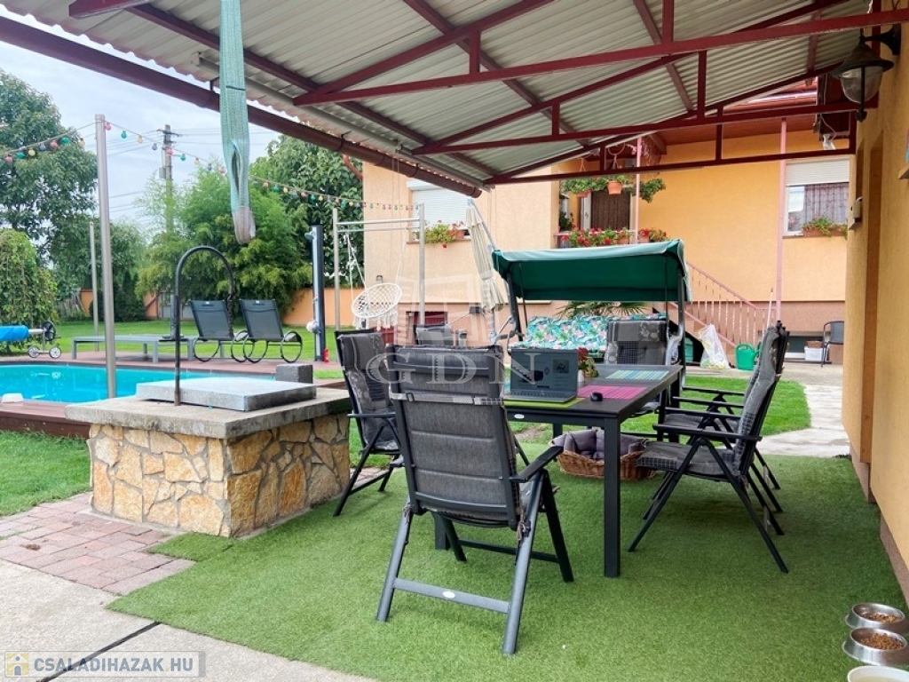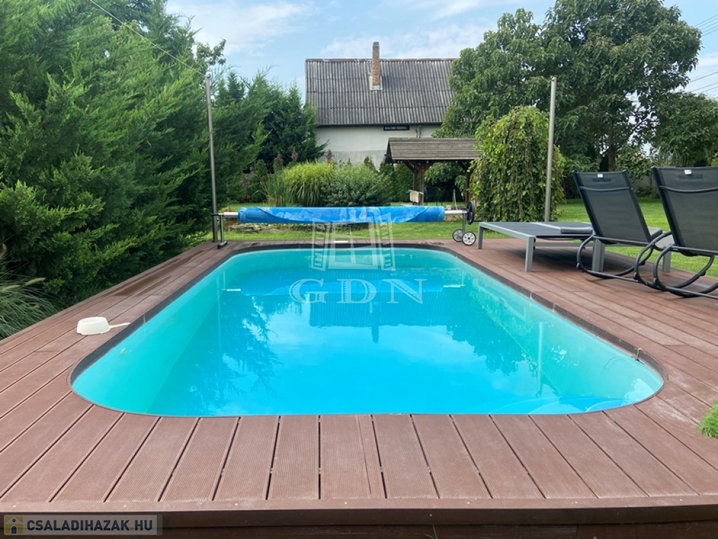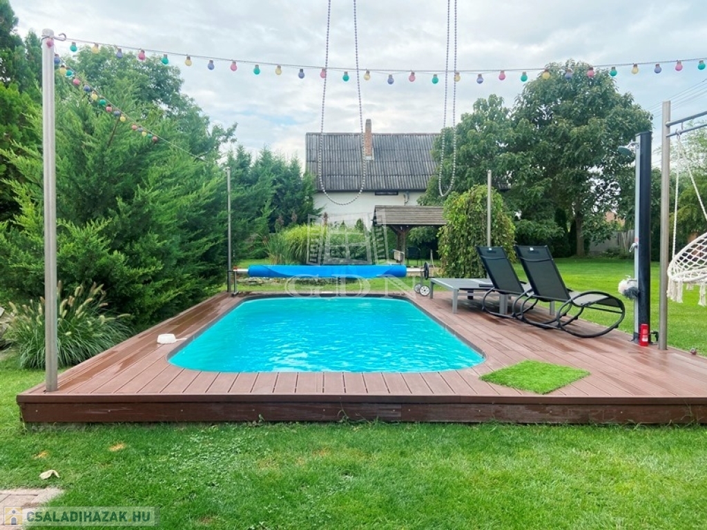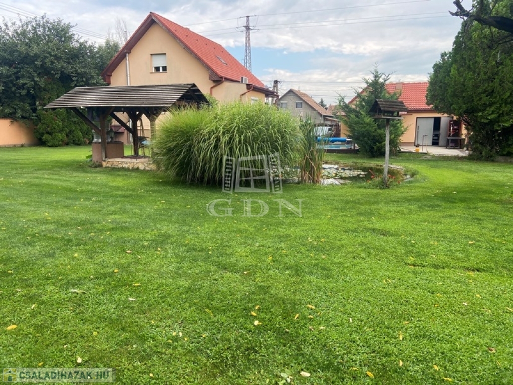 ALACSONY FENNTARTÁSÚ HŐSZIGETELT, KLIMATIZÁLT CSALÁDI HÁZ, MEDENCÉVEL, KERTI TÓVAL, DUPLA TELEKKEL!!!