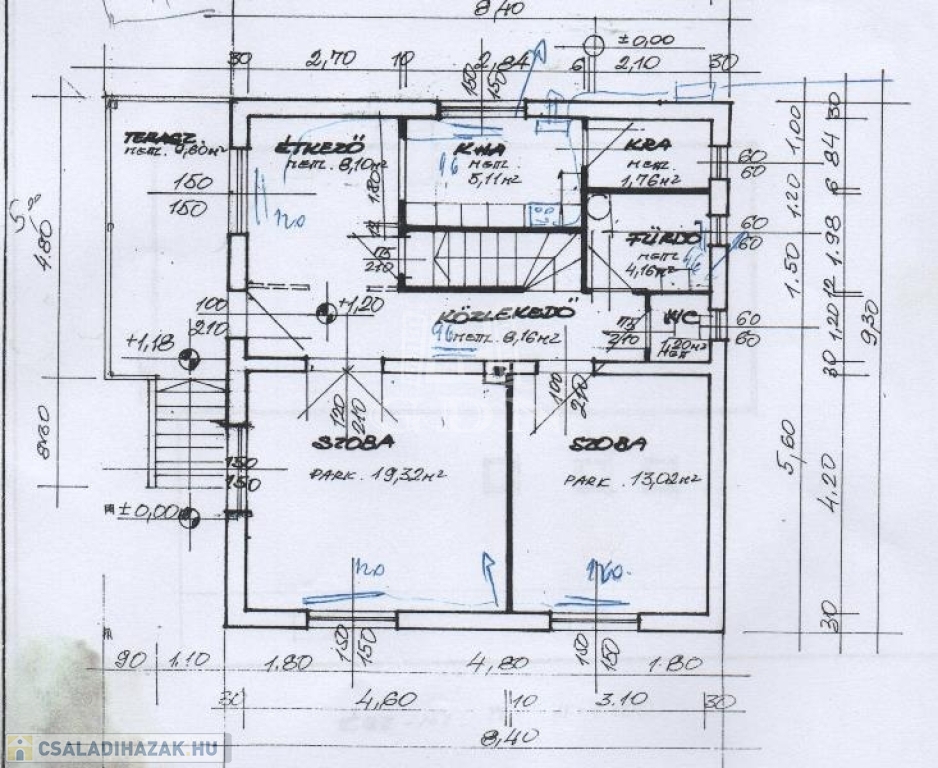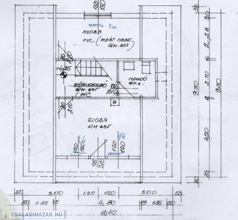 földszint: konyha-étkező, nappali, hálószoba, közlekedő, előszoba, fürdőszoba, toalett; 4m2 fedett szélfogó;