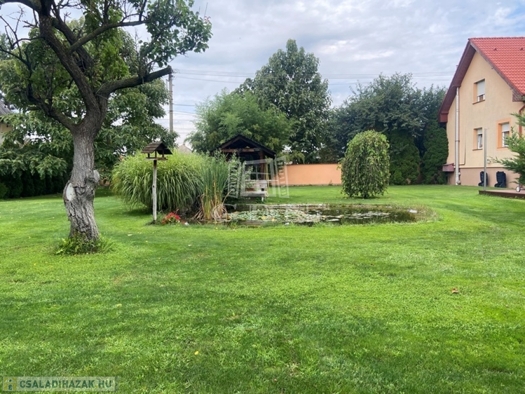 A parkosított, gondozott kert, díszfákkal, cserjékkel, Hummer automata öntözőrendszerrel, kerti sütögetővel, grillezővel, bográcsozóval, zárt kerítéssel, 3db automata kertkapuval, fedett terasszal, 3 db fúrt kúttal, Pedrolló szivattyúval, kerti csapokkal, 24m3 kerti tóval, Firestone kerti csobogóval, 40m3 megfelelő szűrőrendszerrel áll rendelkezésre.