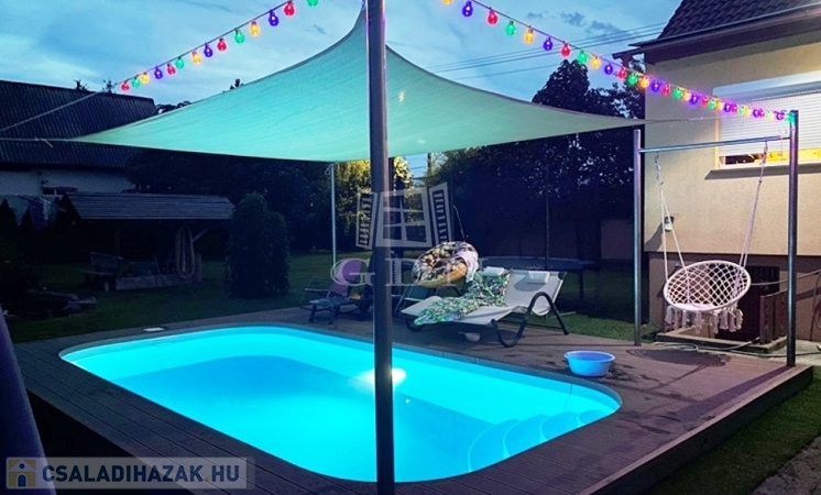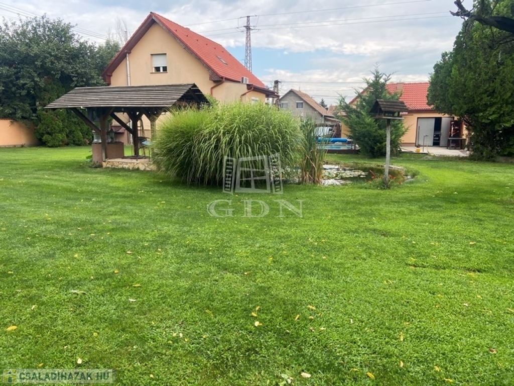 ALACSONY FENNTARTÁSÚ HŐSZIGETELT, KLIMATIZÁLT CSALÁDI HÁZ, MEDENCÉVEL, KERTI TÓVAL, DUPLA TELEKKEL!!!