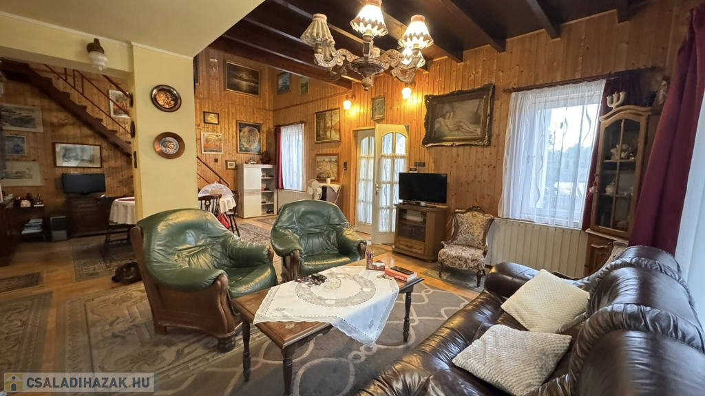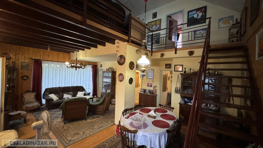 A családi ház felső szintjén klímával felszerelt nappali, 2 db hálószobával, 1 különálló fürdőszoba, az alsó szinten egy hatalmas tágas nappali gyönyörű napfénnyel beövezve, 1 db hatalmas étkezővel, 1 tágas hálószobával.