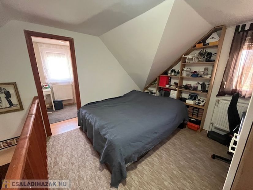 Tetőtérben: nappali (mely jelenleg a szülői hálószoba), 2 külön bejáratú szoba, loggia.