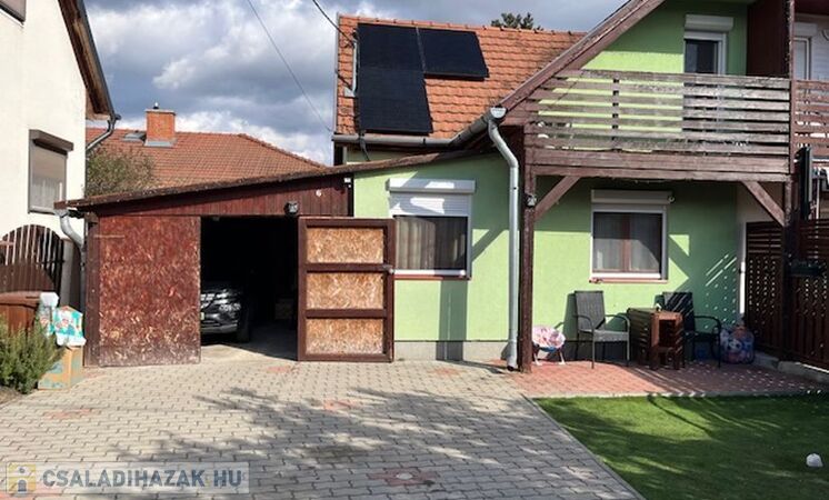 Garázsban 1 autó, a telekre + 1 autóbeállási lehetőség a térkövezett részen. Tároló a garázs hátsó részében.
