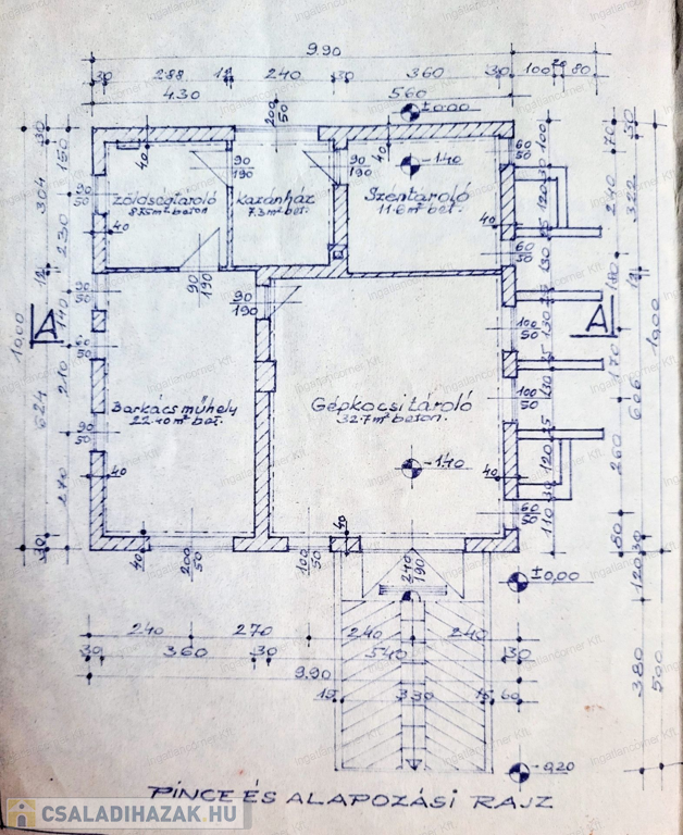 PINCE: Az ingatlanhoz tartozik pince, melynek alapterülete megegyezik a földszintével, melyben szerelőakna is is elérhető, tovább itt található a fűtési rendszer és a vegyes tüzelésű kazán.