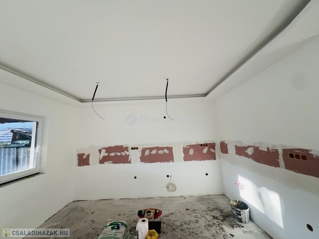 A belső terek tekintetében a leendő tulajdonosok saját ízlésük szerint választhatnak a különböző burkolatok közül, lehetőséget adva ezzel az új otthon személyre szabására. Ez az opció tovább növeli az ingatlan vonzerejét. Az ingatlan ára a kulcsrakész, teljes körű kivitelezést tartalmazza. Hideg-meleg burkolatok 4.500 forintig választhatóak, így mindenki a saját igényének megfelelőt tud választani. Csatorna is van. Körülbelül 1 hónapon belül költözhető.