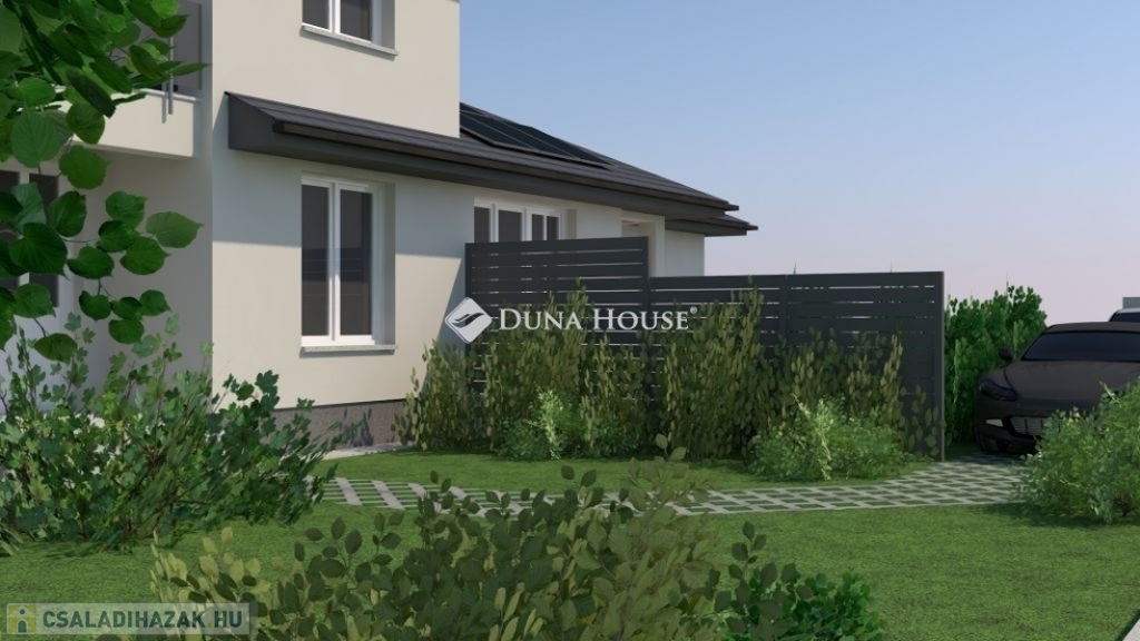 Eladó Szigethalmon csendes utcában egy kivételes, új építésű, két szintes, 90 nm-es iker családi ház hátsó része!