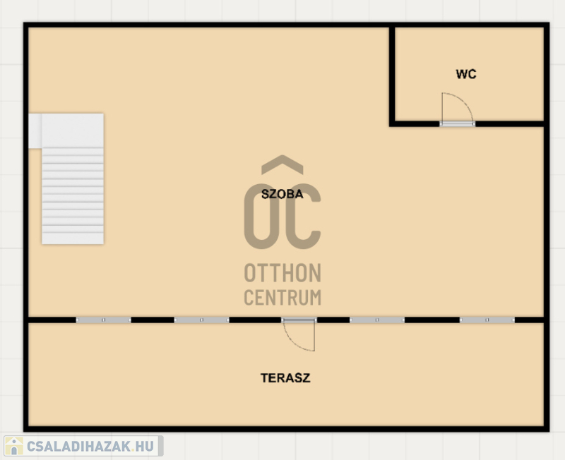 A felső szint könnyen két erkélyes szobává alakítható, a mellékhelység elég nagy, így egy plusz zuhanytálca behelyezése nem okoz problémát.