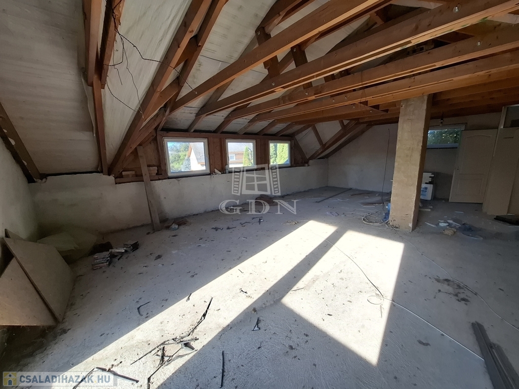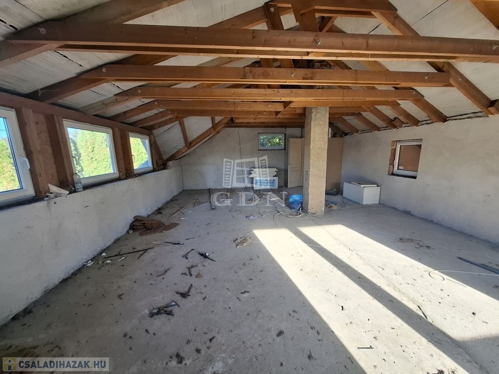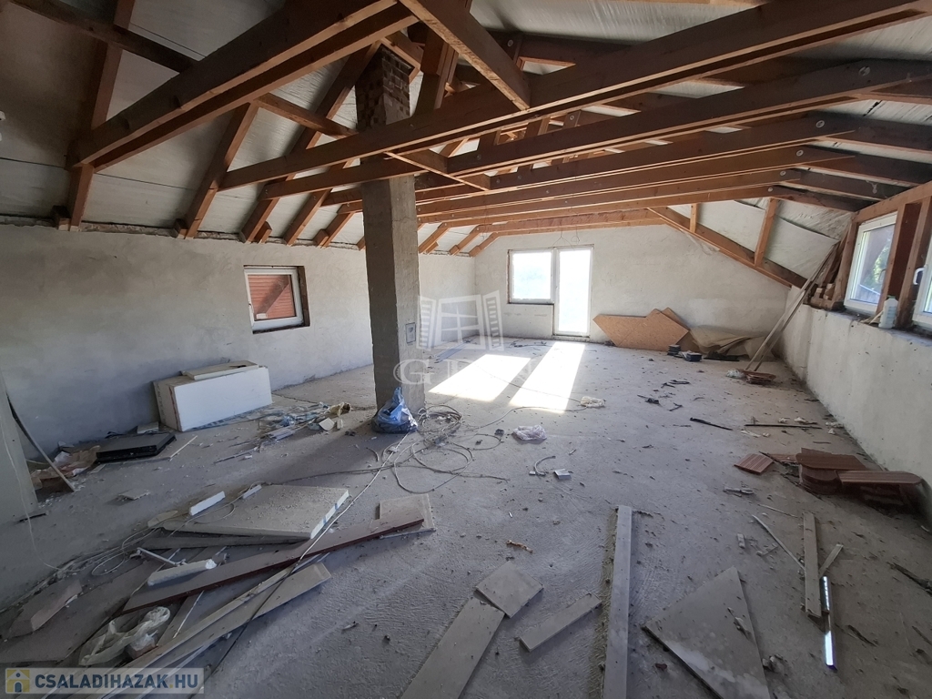 Felső szint: 60 m2 szerkezetkész állapotban, a befejezés a leendő tulajdonos elképzelése szerint történhet, további bővítési lehetőséget biztosítva.