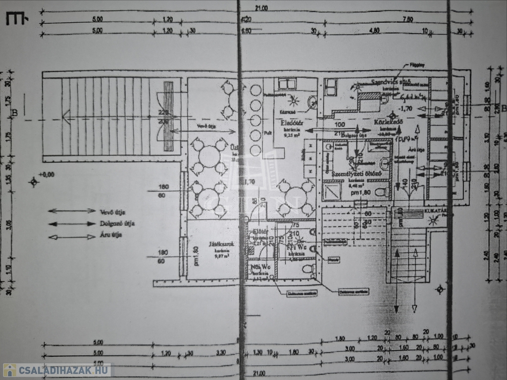 Szuterén szint: Régen vendéglátó egységként működő helyiség, 100 m² alapterülettel, hozzá tartozó kiszolgálóhelyiségekkel, tökéletes lehet vendéglátó egységnek vagy egyéb üzleti célra pl: pizzéria, konditerem, szépségszalon, akár lakhatásra.