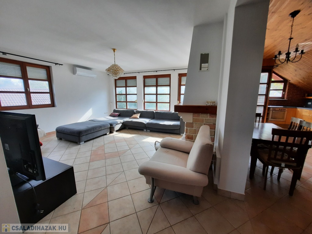 Masszív jól megépített ingatlan , a tulajdonos építtette, nem sajnálva a minőségi anyagokat. A ház egész nap fényárban úszik. Igényes formatervezett, fa árnyékolókkal is ellátott, borovi fenyő ablakokat, ajtókat építettek be. Mindkét szinten fa tüzelésű kandallóban gyönyörködhetünk, mely a téli hónapokban hasznos egy ekkora házban, és látványnak sem utolsó.