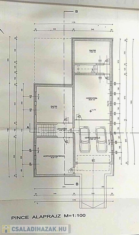 160nm, helyiségei: 2 állásos garázs, kazánház, műhely 39 nm, tároló 29nm, raktár 29nm, 18nm, A lakásból közvetlen lejárat van, a raktárból pedig az udvar felé kijárat. Ipari áram van.