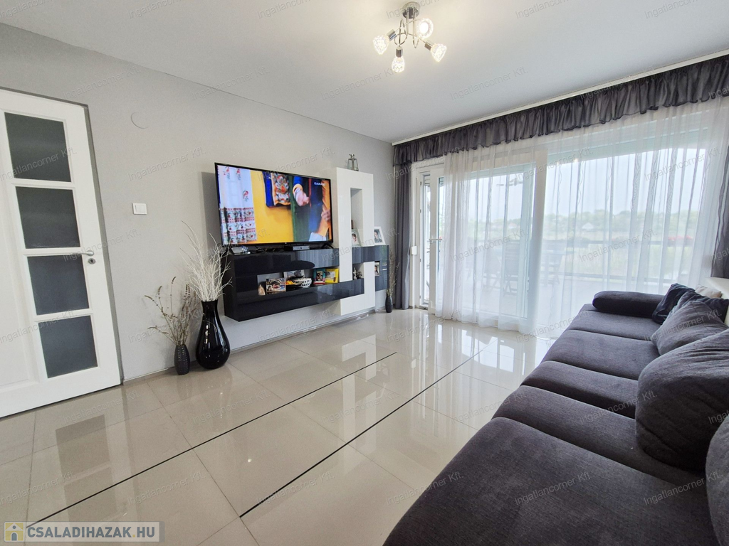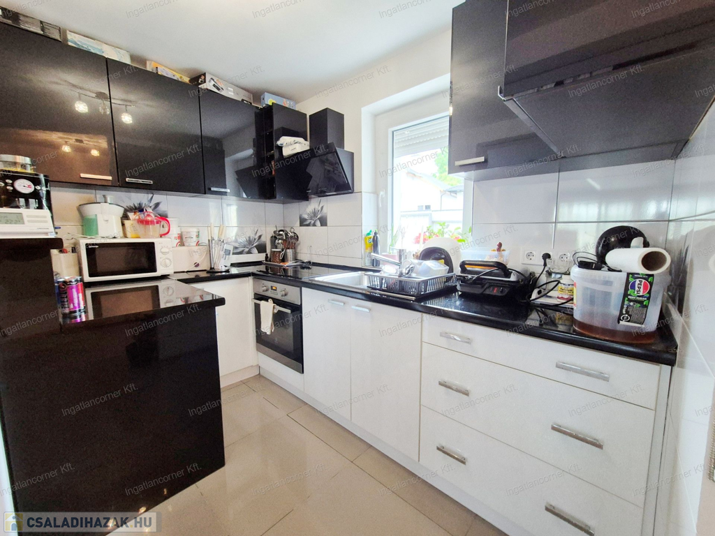 VÉTELÁR RÉSZÉT KÉPEZI: komplett asztalos által készített konyhabútor, beépített gépekkel (Electrolux légkeveréses sütő, indukciós főzőlap és a homlokzatra kivezetett Heinner konyhai elszívóval) és a nappaliban lévő média fal, ami a konyhabútor színeivel van szinkronban.