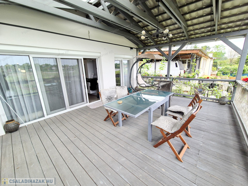 -A nappalin lévő hatalmas tolóajtaján jutunk ki a 35m2-es FEDETT teraszára, ahol a DUNAI látkép foga minket!