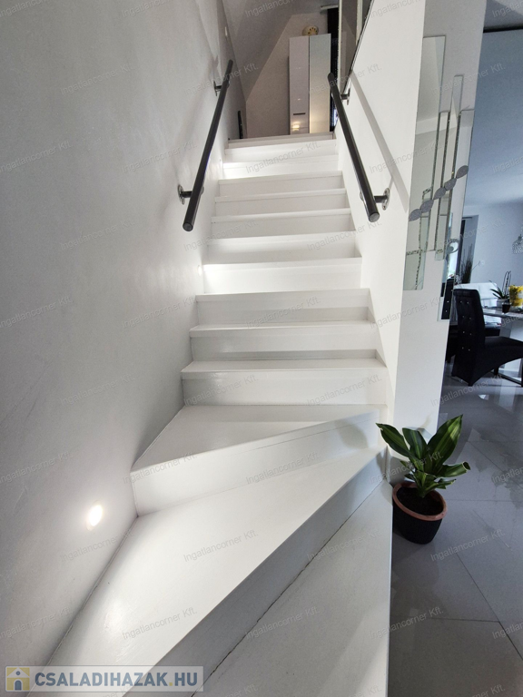-EMELETI LÉPCSŐ: Fa burkolattal ellátott lépcsőfokok, beépített ledes lépcső megvilágítás biztosítja a biztonságos le és feljutást.